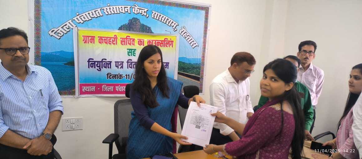 डीएम व डीडीसी ने दी जिम्मेदारी, पारदर्शिता से कार्य करने का निर्देशफोटो-16- ग्राम कचहरी सचिवों को नियुक्ति पत्र देते डीएम. प्रतिनिधि, सासाराम ऑफिसजिले के नवीन नियुक्त 65 ग्राम कचहरी सचिवों को शुक्रवार को नियुक्ति पत्र सौंपा गया. यह कार्यक्रम जिला पंचायत राज कार्यालय परिसर स्थित सभागार में आयोजित हुआ, जिसकी अध्यक्षता डीएम उदिता सिंह व डीडीसी विजय कुमार पांडेय ने की. डीएम ने सभी नव नियुक्त सचिवों को ग्राम कचहरी व्यवस्था को सुदृढ़ और पारदर्शी बनाने की दिशा में कार्य करने का निर्देश दिया. उन्होंने कहा कि ग्राम कचहरियों को ग्रामीण न्याय प्रणाली का सशक्त माध्यम बनाया जाए और किसी भी विवाद का त्वरित निपटारा सुनिश्चित किया जाये.