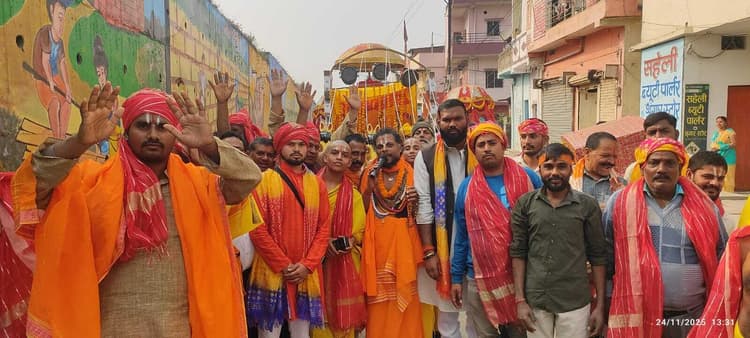 डेहरी में हाथी-घोड़े, गाजे-बाजे के साथ निकली भगवान श्रीराम की बारात प्रतिनिधि, डेहरी ऑफिस. मर्यादा पुरुषोत्तम भगवान श्रीराम की बारात शहर में हाथी-घोड़े, गाजे-बाजे, रथ गाड़ी और पालकी के साथ बड़े ही धूमधाम के साथ निकाली गयी. शहर में सोमवार को श्री त्रिदंडी देव सत्संग आश्रम गांधीनगर से हाथी-घोड़े व गाजे-बाजे के साथ निकली उक्त शोभायात्रा बारात गांधीनगर, बिरनबिगहा, जीटी रोड, न्यू एरिया, जोड़ा मंदिर, मोहन बिगहा, स्टेशन रोड, पाली रोड, थाना चौक, डेहरी बाजार, हनुमान मंदिर, आंबेडकर चौक, कैनाल रोड, जीटी रोड बस स्टैंड होते हुए पुनः श्री त्रिदंडी देव सत्संग आश्रम पहुंचा. इस बीच श्रद्धालुओं की ओर से कई जगह बारात का जोरदार ढंग से स्वागत किया गया. बारात के स्वागत में श्रद्धालुओं ने गलियों की सफाई कर रंगोली बनायी. महिलाओं ने जगह-जगह श्रीराम की आरती उतारी. मंगल गीत गाये. साधु संत धर्माचार्य व जगतगुरु को अंग वस्त्र फूल-माला से स्वागत किया गया. स्टेशन रोड में चंद्रकांति पांडेय व सत्येंद्र पांडे, पाली रोड में नारायण स्वीट्स के नौलाख पांडेय, पांडेय मिष्ठान के अरविंद पांडेय, डेहरी बाजार में अमर ज्योति के पास ललन, रानी साहिबा के पास सीताराम अग्रवाल व मीना अग्रवाल के नेतृत्व में बारात का स्वागत किया गया. प्रभु श्रीराम की बारात निकलने पर पूरा शहर जय श्रीराम के नारे से गूंज उठा. बता दें कि श्री त्रिदंडीदेव सत्संग आश्रम सेवा ट्रस्ट की ओर से श्रीराम विवाह महोत्सव की इस बार 52वीं वर्षगांठ है. इस अवसर पर आश्रम के महंत सह ट्रस्ट के अध्यक्ष स्वामी रंगनाथाचार्य जी महाराज के नेतृत्व में निकाली गयी शोभायात्रा बारात में सुसज्जित रथ पालकी में भगवान श्रीराम भैया लक्ष्मण, भरत, शत्रुघ्न के साथ विराजमान थे. बरात में भजन-कीर्तन व जय श्रीराम के जयकारे लगाते श्रद्धालु चल रहे थे. इनकी रही मौजूदगी अयोध्या कौशल सदन जगतगुरु विद्या भास्कर जी महाराज, रंगनाथ जीयर आदिकेशव स्वामी, श्याम नारायणाचार्य सत्येंद्र पांडेय, शशिकांत तिवारी रामायणी हनुमान स्वामी, सुनील चौबे, रामप्रवेश चौबे, कृष्णा चौबे, विश्वनाथ मिश्रा, पुजारी सत्यनारायण, अरुण दास, ललन पांडेय, महेंद्र पांडेय, आकाश मिश्रा पवन उपाध्याय, उमंग शुक्ला, लिटिल पांडेय, यश उपाध्याय पीतांबर, संतोष सिंह, अनुज कुशवाहा, मोनू पांडे, रजनीकांत दुबे, अमन चौधरी, रवि प्रजापति, मुकेश शौडिक, सिक्कू दुबे, कमलेश दुबे, हरिनारायण तिवारी, प्रेम तिवारी, कृष्णा मिश्रा, सत्येंद्र नाथ चौबे, मदन मोहन, रामप्रवेश तिवारी, गौ रक्षा के रणधीर, बजरंग दल के अमर सिंह, अंकित सिंह समेत काफी संख्या में श्रद्धालु शामिल हुए. आश्रम में श्रीराम विवाह महोत्सव 25 दिसंबर मंगलवार को होगा. मौके पर विशाल भंडारे का आयोजन किय