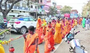 Sasaram news. सोनवर्षा गांव में 10 दिवसीय श्रीश्री शिवशक्ति ज्ञान महायज्ञ शनिवार को भव्य कलश शोभायात्रा के साथ प्रारंभ हो गया.