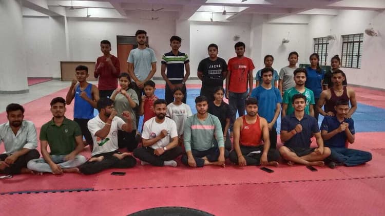 विजेता खिलाड़ी लखीसराय में राज्यस्तरीय मुकाबले में लेंगे भागफोटो-3- ताइक्वांडो हॉल में मौजूद खिलाड़ी.