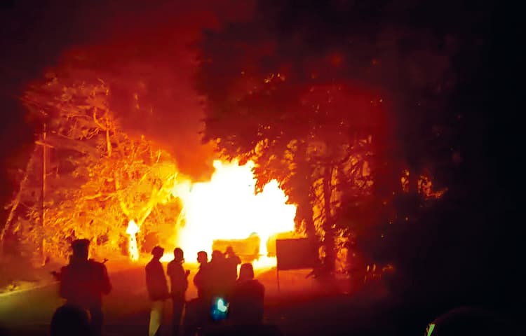 थाना क्षेत्र में आरा-सासाराम मुख्य पथ पर बस स्टैंड के पास रविवार की शाम बस की चपेट में आने से 32 वर्षीय युवक की घटनास्थल पर ही हुई मौत के बाद लोगों का गुस्सा फूट पड़ा. कुछ ही देर में लोगों की भीड़ जुट गयी. लोगों ने बस में आग लगा दी. बस चलने लगी. इधर, परिजनों में चीख-पुकार मची थी. जानकारी के अनुसार, मृत ऑटो चलाक कामेश्वर गिरि का पुत्र था. वह टेंपू चलाने का काम करता था. राजेश गिरी अपना ऑटो लेकर बस स्टैंड पर खड़ा था. इसी बीच सासाराम से विक्रमगंज की ओर जा रही तिवारी बस की चपेट में वह आ गया. घटना के बाद लोग उधर दौड़े. परंतु इसी बीच बस चालक बस लेकर भाग निकला. जिसे आक्रोशित ग्रामीणों ने पीछाकर नहर डग के आगे सिंचाई विभाग ऑफिस के समीप पकड़ लिया. हलांकि, इसी बीच बस का चालक व खलासी बस छोड़कर भाग निकले. उधर, आक्रोशित लोगों ने बस में आग लगा दी. इससे बस धू-धूकर जलने लगी.
