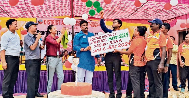 बिक्रमगंज. नगर के इंटर कॉलेज स्टेडियम के मैदान में पूर्व निर्धारित जिलास्तरीय एथलेटिक्स चयन प्रतियोगिता की शुरुआत रंगारंग कार्यक्रम से हुई. इसमें रोशन डांस एकेडमी के छोटे डांस कलाकारों के जलवों पर सभी ने तालियां बजायीं. प्रतियोगिता की शुरुआत अनुमंडलाधिकारी अनिल बसाक ने गुब्बारा उड़ा कर किया. इस मौके पर उन्होंने खिलाड़ियों की हौसलाअफजाई की और खेल से भी भविष्य संवारने और नाम रोशन करने की बात कही. कहा कि अब तो राज्य सरकार भी राज्यस्तरीय खेलों में शामिल होने वाले खिलाड़ियों को खेल कोटे से नौकरी दे रही है. उन्होंने जिला एथलीट संघ के सदस्यों को बिक्रमगंज में आयोजन करने के लिए धन्यवाद दिया. इससे पहले रोहतास जिला एथलेटिक्स संघ के तत्वावधान में प्रतियोगिता में शामिल खिलाड़ियों द्वारा भव्य मार्च पास्ट किया गया. खिलाड़ियों के मार्च पास्ट की सलामी मुख्य अतिथि के रूप में अनुमंडलाधिकारी ने ली. इस अवसर पर विशिष्ट अतिथि के रूप में नगर के पूर्व सभापति गुप्तेश्वर गुप्ता ने खिलाड़ियों का उत्साहवर्धन किया. इस मौके पर जिला एथलेटिक संघ के अध्यक्ष अनिल कुमार सिंह ने अपने स्वागत भाषण में जिले के विभिन्न क्षेत्र से आये एथलीटों एवं अतिथियों का स्वागत किया. एवं सफल आयोजन के लिए संघ के वरीय उपाध्यक्ष मनीष कुमार सिंह उर्फ टिल्लू सिंह और जिले की यूथ आइकॉन शिवपुर पंचायत की मुखिया स्वेता सिंह, संयोजन संघ के संयुक्त सचिव कुश कुमार त्रिपाठी, सचिव विनय कृष्ण, सत्येंद्र कुमार, अरविंद कुमार सिंह, उपेंद्र कुमार, राणा प्रताप सिंह, सुरेंद्र कुमार, शिवम कुमार, सुमन कुमारी, निशांत कुमार, अंतिम राज, शशि कुमार, नीरज कुमार, राकेश वर्मा को सफल आयोजन के लिए धन्यवाद दिया. एथलेटिक्स संघ के सचिव विनय कृष्ण ने बताया कि पहले दिन सभी वर्गों की लंबी कूद, गोला फेंक और 1500 मीटर, 800 मीटर, 400 मीटर 600 मीटर,100 मीटर दौड़ की स्पर्धाएं आयोजित की गयीं.