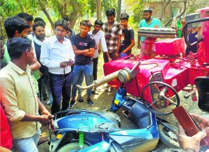 स्कूटी पर ट्रैक्टर पलटा, बचे शिक्षक