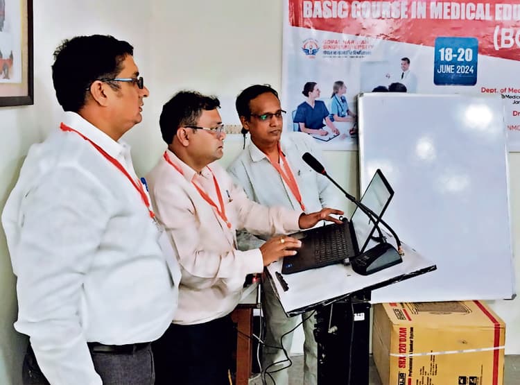 सासाराम नगर. चिकित्सा शिक्षा के छात्रों को नये सिलेबस के अनुसार उत्कृष्ट तरीके से शिक्षण प्रदान करने के लिए बेसिक रिवाइज इन मेडिकल एजुकेशन का प्रशिक्षण प्रारंभ कर दिया गया. मंगलवार को नारायण मेडिकल कॉलेज एवं अस्पताल में शुरू हुए इस तीन दिवसीय प्रशिक्षण कार्यक्रम का उद्देश्य नयी तकनीक पर आधारित चिकित्सा शिक्षा उपलब्ध कराना है. इसमें चिकित्सा शिक्षा देने वाले शिक्षक प्रशिक्षण प्राप्त कर रहे हैं. इस प्रशिक्षण कार्यक्रम का मुख्य समन्वयक बीएचयू के डॉक्टर आशीष वर्मा, राष्ट्रीय चिकित्सा परिषद के नामित सदस्य बनाये गये हैं. चिकित्सा विज्ञान के शिक्षकों को प्रशिक्षित करने के लिए नारायण मेडिकल कॉलेज के चिकित्सा अधीक्षक सह विभाग अध्यक्ष चर्म रोग विभाग डॉ पुनीत कुमार सिंह, औषधि रोग विभाग के अध्यक्ष डॉ जितेंद्र कुमार, शिशु रोग के विभागाध्यक्ष डॉ मणिकांत कुमार, एनाटॉमी के विभाग अध्यक्ष डॉ शंभू प्रसाद, बायो केमिस्ट्री के विभागाध्यक्ष डॉ विवेक सिंह, फिजियोलॉजी के विभागाध्यक्ष डॉ अशोक कुमार देव, कम्युनिटी मेडिसिन विभाग के अध्यक्ष डॉ निपेन्द्र आनंद, औषधि रोग विभाग के प्रो डॉ रंजन कुमार, नाक, कान एवं गला रोग विभाग के प्रोफेसर डॉ चंद्रकांत दिवाकर सहित कई प्रशिक्षक के रूप में अपना कार्य कर रहे हैं, जबकि विभिन्न विभागों के तीस चिकित्सा शिक्षक प्रशिक्षण प्राप्त कर रहे हैं. यह कार्यक्रम राष्ट्रीय चिकित्सा परिषद, नयी दिल्ली के निर्देश के आलोक में हो रहा है. ताकि चिकित्सा शिक्षा को आधुनिकतम तकनीक से युक्त किया जा सके.