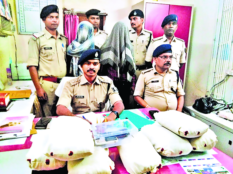 डेहरी नगर. रोहतास पुलिस को एक बड़ी कामयाबी उस समय मिली, जब डिलिवरी होने से पहले ओड़िशा से गांजा लेकर कार से आ रहे दो तस्करों को नगर थाना क्षेत्र के पाली पुल स्थित फोरलेन के समीप गिरफ्तार कर लिया गया. सोमवार की रात 73 किलो गांजे के साथ पकड़ाये दोनों तस्कर यूपी के रामनगर के रहने वाले हैं. जब्त गांजे की कीमत 15 लाख रुपये बतायी जा रही है. पुलिस ने यह कार्रवाई गुप्त सूचना के आधार पर की. एएसपी सह एसडीपीओ कोटा किरण कुमार ने नगर थाने में मंगलवार को प्रेसवार्ता के दौरान बताया कि नगर थानाध्यक्ष को गुप्त सूचना मिली कि मादक पदार्थ गांजे के अवैध कारोबारी डेहरी नगर थाने की ओर जा रहे हैं. इसका सत्यापन व आवश्यक कार्रवाई के लिए पुलिस अधीक्षक के आदेशानुसार अनुमंडल पुलिस पदाधिकारी वन के निर्देशन में नगर थानाध्यक्ष के नेतृत्व में एक टीम का गठन किया गया. टीम के द्वारा छापेमारी कर एनएचटू स्थित टीवीएस शोरूम के सामने पाली रोड जाने वाले मोड़ के पास रजिस्ट्रेशन संख्या यूपी53जेड4896 सैंट्रो कार से कुल 73.556 किलोग्राम गांजा बरामद किया गया. इस दौरान उत्तर प्रदेश के रामनगर थाना क्षेत्र के रामनगर मच्छरहट्टा भीटी निवासी बसंती बगेर के 25 वर्षीय पुत्र अनिल कुमार, कतबारू पटेल के 26 वर्षीय पुत्र राजन कुमार को गिरफ्तार किया गया. बरामद गांजे की कीमत लगभग 15 लाख है. गांजे के साथ दो मोबाइल भी बरामद किये गये हैं. उन्होंने बताया कि गिरफ्तार तस्करों का आपराधिक इतिहास खंगाला जा रहा है. छापेमारी टीम में थानाध्यक्ष शिवेंद्र कुमार, पुलिस अवर निरीक्षक संतोष कुमार अरुण, चंद्रहास कुमार, अक्षय कुमार सिंह, हवलदार 68 चंदेश्वर मंडल, सिपाही /1264 अमित कुमार शामिल थे.