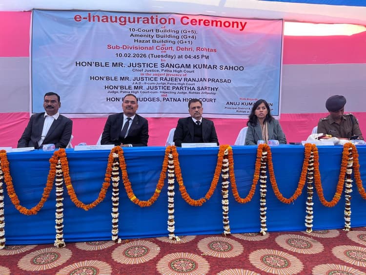 डेहरी ऑफिस़ डेहरी अनुमंडल न्यायालय के बने नये भवन का मंगलवार को पटना उच्च न्यायालय के मुख्य न्यायाधीश संगम कुमार साहू ने वर्चुअल उद्घाटन किया. इस अवसर पर उच्च न्यायालय में जेएडी द्वितीय कम जज पटना हाइकोर्ट राजीव रंजन प्रसाद, हाइकोर्ट पटना के जज कम इंस्पेक्टींग जज रोहतास पार्थ सार्थी मौजूद थे. वर्चुअल उद्घाटन के मौके पर नये भवन में आयोजित समारोह में जिला जज अनूप कुमार जैन, प्रधान न्यायाधीश सासाराम नवल कुमार, जिलाधिकारी उदिता सिंह, पुलिस अधीक्षक रौशन कुमार व बार एसोसिएशन डेहरी के अध्यक्ष मनोज कुमार मंच पर मौजूद थे. कार्यक्रम की शुरुआत पटना उच्च न्यायालय से वर्चुअल निर्देश के बाद राष्ट्रगान व जिला जज के संबोधन से हुआ. उसके बाद बार एसोसिएशन के अध्यक्ष ने उपस्थित लोगों को संबोधित किया. समारोह स्थल पर बने पंडाल में लगी छह बड़े एलइडी पर जिला जज व अधिकारियों, अधिवक्ताओं ने वर्चुअल उद्घाटन के दौरान पटना उच्च न्यायालय से जुड़े मुख्य न्यायाधीश सहित अन्य वक्ताओं के संबोधन को सुना. विदित हो कि लगभग 35 करोड़ रुपये की लागत से बने उक्त जी पल्स फाइव भवन में 10 कोर्ट रूम, जी पल्स फाइव एमिनिटी बिल्डिंग, एक हाजत बिल्डिंग बनायी गयी है. अत्याधुनिक सुविधाओं से युक्त उक्त न्यायालय भवन के बनने से आम जनता के साथ-साथ अधिवक्ताओं को भी काफी लाभ मिलेगा. इस मौके पर एसडीजेएम रजत दीप, मुंशिफ अर्चना कुमारी, प्रथम श्रेणी न्यायिक दंडाधिकारी प्रवीण कुमार व ऋचा कश्यप, एसडीएम निलेश कुमार, एएसपी अतुलेश झा, नगर थानाध्यक्ष शिवेंद्र कुमार, जिला से आये वरीय अधिवक्ताओं के साथ-साथ बार एसोसिएशन डेहरी के पूर्व अध्यक्ष उमाशंकर पांडेय व रमाकांत दुबे, सचिव रितेश कुमार, बार के सदस्य मिथिलेश कुमार सिन्हा, दीपक कुमार, अमरनाथ सिंह, रवि कुमार, आदित्य उपाध्याय, प्रशांत पाठक, सुधीर तिवारी, बैरिस्टर सिंह, मनीषा दुबे, ओम प्रकाश पांडेय, बिक्रम कुमार, जयराम कुमार आदि उपस्थित थे.