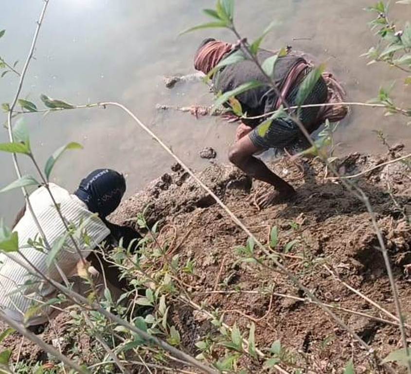 फोटो-4- रजवाहा से शव निकलते चौकीदार,