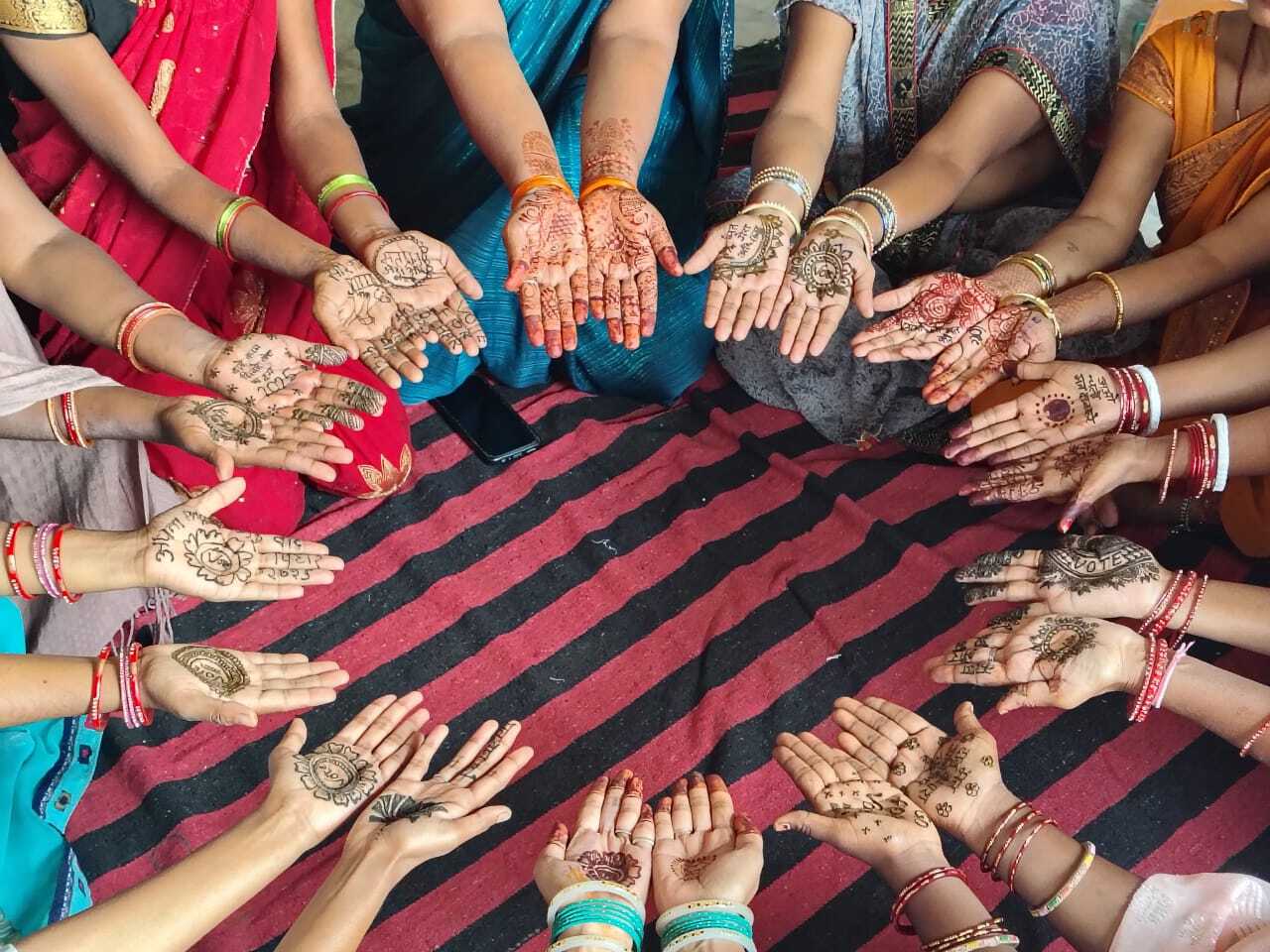 हाथों पर मेहंदी, दिल में लोकतंत्र, दीदियों ने रचा जागरूकता का अनोखा अंदाज फोटो -5- मतदाता जागरूकता अभियान में जीविका दीदियों का मेहंदी प्रदर्शन. प्रतिनिधि, तिलौथू. जीविका के तहत संचालित तिलोथू प्रखंड के 84 महिला ग्राम संगठनों में स्वीप को-सेल के निर्देशन में मतदाता जागरूकता के उद्देश्य से मेहंदी प्रतियोगिता का आयोजन किया गया. बीपीएम सैयद सकीबुल्लाह ने बताया कि इस कार्यक्रम में लगभग 2,140 स्वयं सहायता समूह (एसएचजी) की दीदियों ने अपने परिवार के सदस्यों के साथ उत्साहपूर्वक भाग लिया. सभी प्रतिभागियों ने अपने हाथों पर मतदान से जुड़े स्लोगन और प्रतीक चिह्न मेहंदी के माध्यम से उकेरकर महिलाओं को आगामी विधानसभा चुनाव में अपने मताधिकार के प्रयोग के लिए प्रेरित किया. कार्यक्रम के दौरान महिलाओं ने सभी उपस्थित लोगों को मतदान के प्रति जागरूक रहने और मतदान अवश्य करने की शपथ भी दिलायी. इस अवसर पर बीपीएम जीविका एवं श्रम प्रवर्तन पदाधिकारी गौतम कुमार ने विभिन्न ग्राम संगठनों में पहुंचकर प्रतिभागी महिलाओं का उत्साहवर्धन किया. कार्यक्रम को सफल बनाने में दीपिका कुमारी, गीता कुमारी, रिंकी कुमारी और सारिका कुमारी का विशेष योगदान रहा. कार्यक्रम को सफल बनाने में दीपिका कुमारी, गीता कुमारी, रिंकी कुमारी और सारिका कुमारी का विशेष योगदान रहा.