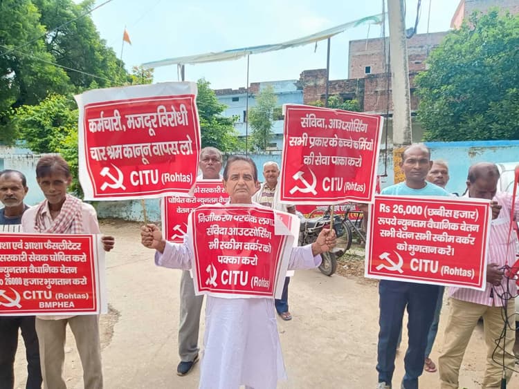 सदर अस्पताल स्थित प्राथमिक स्वास्थ्य केंद्र परिसर में श्रम संगठन, स्वतंत्र फेडरेशन, सार्वजनिक प्रतिष्ठान, विभिन्न संगठित व असंगठित मजदूरों समेत सभी स्कीम वर्कर्स ने अपनी विभिन्न मांगों को लेकर बुधवार को धरना-प्रदर्शन किया. बिहार राज्य आशा व आशा फैसिलिटेटर संघ ने भी हड़ताल के समर्थन में सभी प्राथमिक व सामुदायिक स्वास्थ्य केंद्रों पर प्रदर्शन किया. प्रदर्शन के माध्यम से आशा ने कहा कि राज्य की ग्रामीण स्वास्थ्य सेवा के बुनियाद के रूप में आशा एवं आशा फैसिलिटेटर के प्रयास से ही संस्थागत प्रसव व टीकाकरण कार्य में प्रगति हुई है. इसके अलावा केंद्रीय व राज्य स्तरीय कार्यों के संचालन में भी आशाओं की अहम भूमिका है. कोरोना जैसी महामारी के दौरान आशा ने अपनी जान जोखिम में डाल कार्य किया था. इसकी विश्व स्वास्थ्य संगठन, पटना उच्च न्यायालय, बिहार सरकार, भारत सरकार व मानवाधिकार आयोग ने सराहना की थी. श्रम सम्मेलनों और राष्ट्रीय मानवाधिकार की ओर से आशा को मजदूर का दर्जा देते हुए वैधानिक मजदूरी देने की अनुशंसा की गयी थी. इसके बावजूद भी आशा को चार माह तक का प्रोत्साहन राशि का भुगतान नहीं किया गया है. हेल्थ एंड वेलनेस सेंटर पर कार्यरत आशा को मिलने वाले एक हजार रुपये में कमीशनखोरी की जा रही है. बिक्रमगंज अनुमंडल अस्पताल में भी आशा ने मांगों को लेकर प्रदर्शन किया. मौके पर सपना देवी, पार्वती देवी, मीना देवी, कश्मीरा देवी, इंदू देवी, अपराजो देवी, दीपा कुमारी, सोनामती कुमारी, रेणु बाला देवी, कांति कुमारी, कुमारी गीता वर्मा, सुशीला देवी, विदेशी पासवान, कामेश्वर सिंह, दशरथ प्रसाद, सुदामा राम, अक्षय कुमार, दिवाकर पाठक, अनिल कुमार श्रीवास्तव, रामइकबाल राम आदि मौजूद रहे.डिस्क्लेमर: यह प्रभात खबर समाचार पत्र की ऑटोमेटेड न्यूज फीड है. इसे प्रभात खबर डॉट कॉम की टीम ने संपादित नहीं किया है