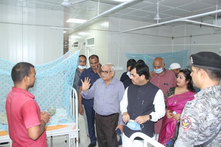 Bhagalpur Dengue News: शाहनवाज हुसैन ने भर्ती मरीजों का हाल जाना. शहर में सफाई व छिड़काव को लेकर पूर्व मंत्री ने कहा कि जिलाधिकारी से इस बारे में बात ही गयी है. मायागंज अस्पताल में फर्श पर मरीज का इलाज हो रहा है.