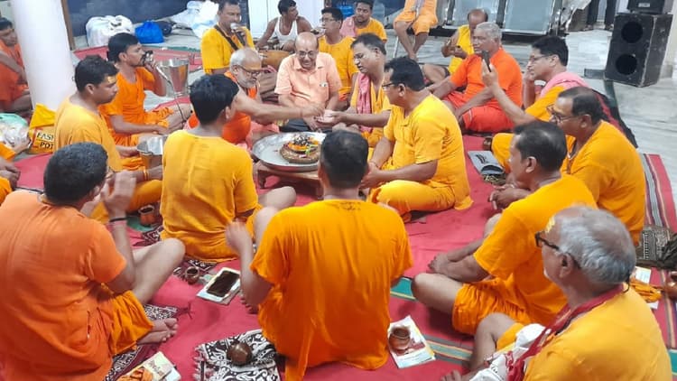 श्री आशुतोष कांवरिया संघ सूरत, गुजरात के कांवरिये सुल्तागनंज पहुंचे. जत्थे में शामिल कांवरियों ने बताया कि रोज सुबह-शाम साढ़े चार घंटे का वो लोग रूद्राभिषेक करते है. बाबाधाम तक के सफर में डेढ़ लाख मंत्र का जाप हो जाता है. जत्था गुरूवार को सुलतानगंज से बाबाधाम को रवाना हुआ. मारवाडी युवा मंच के महर्षि मेंहि विश्रामालय मे सभी कांवरियों ने शिव मंत्र का जाप किया. जिसे देखने के लिए स्थानीय लोग व अन्य कांवरिया भी मौजूद रह.