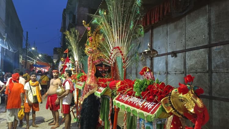एक साथ नौ कांवड़िया कांवड़ को देते हैं कंधा
