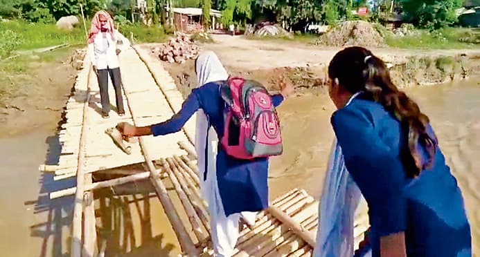 वहीं सीतामढ़ी जिले के सोनबरसा प्रखंड के पुरनदाहा राजवाड़ा स्थित झीम नदी पर चचरी के पुल के सहारे लोग चलने को मजबूर हैं. चचरी का यह पुल भी अब 10 से 15 मिटर में टूटकर ध्वस्त हो चुका है. लेकिन उसके बावजूद स्कूली बच्चे टूटी हुई चचरी के ऊपर से स्कूल आ और जा रहे हैं. झीम नदी पर बना चचरी का पुल टूट गया है. चचरी के पुल के नीचे से पानी का तेज बहाव चल रहा है. ऐसे में जान को खतरे में डालकर स्कूली बच्चे स्कूल आवागमन कर रहे है. बता दें कि एक महीने पहले यहां डायवर्सन था, जो बाढ़ के तेज पानी में टूट गया था. जिसके बाद लोगों के पैदल आवागमन के लिए चचरी का पुल बनाया गया. वह भी 10 दिनों के अंदर टूट गया.