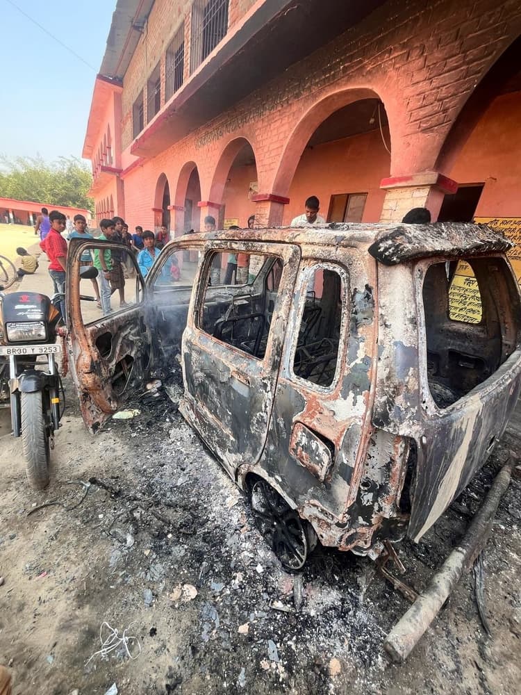 बथनाहा. प्रखंड क्षेत्र के मध्य विद्यालय, सहियारा में गुरुवार को उस वक्त अजीब स्थिति उत्पन्न हो गयी, जब स्कूल परिसर में खड़ी एक इलेक्ट्रिक कार में अचानक आग लगने से पूरा स्कूल परिसर धुआं-धुआं हो गया. देखते ही देखते वहां अफरातफरी मच गयी. विद्यालय में पठन कार्य में लगे छात्र-छात्राओं अपने वर्ग कक्ष से निकलकर इधर-उधर भागने लगे. जलते कार से विस्फोट होने लगा, जिसकी आवाज सुनकर आसपास के लोग मौके पर पहुंचे, लेकिन आग की लपटे देखकर किसी की हिम्मत बुझाने की नहीं हो रही थी. स्थानीय पुलिस को इसकी सूचना दी गयी. सूचना मिलते ही स्थानीय थानाध्यक्ष कुंदन कुमार व एएसआई राकेश कुमार दलबल के साथ मौके पर पहुंचे. इसके बाद स्थानीय लोगों के सहयोग से किसी तरह आग पर काबू पाया गया. हालाकि, सूचना के बाद भी अग्निशमन दस्ता घटना स्थल पर नहीं पहुंची. जानकारी के अनुसार, बथनाहा थाना क्षेत्र के कमलदह गांव निवासी शिक्षक पंकज प्रकाश अपनी बीआर-2, एफ-0950 नंबर की इलेक्ट्रिक वैगनआर कार से अन्य दिनों की तरह गुरुवार को भी विद्यालय परिसर में कार खड़ी कर काम-काज में लग गये. इसी दौरान कार में अचानक आग लग गयी.