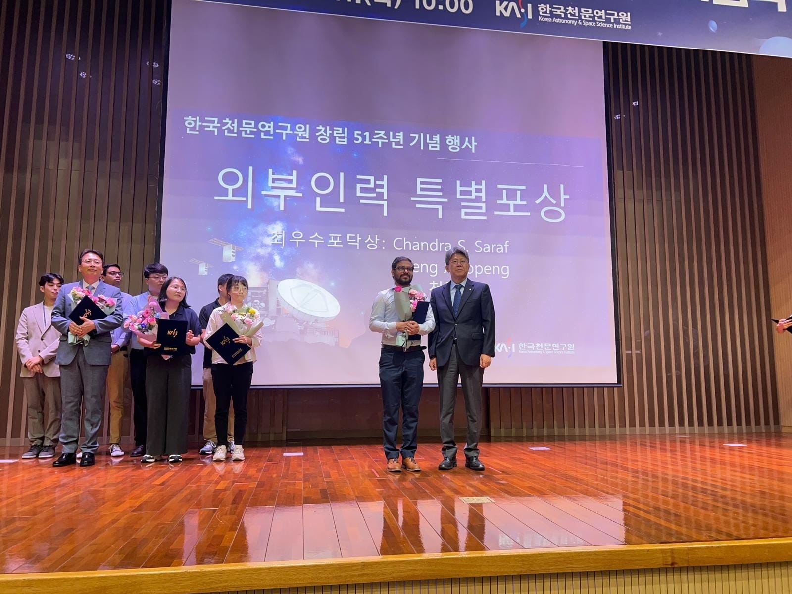 . नगर के वार्ड संख्या 16 के लाल चंद्रशेखर को साउथ कोरिया में पोस्ट डॉक्टर उपाधि से सम्मानित किया गया है. पुपरी निवासी समाजसेवी व साधारण परिवार से ताल्लुक रखने वाले अनिल सर्राफ व रेणु सर्राफ के पुत्र चंद्रशेखर ने ब्रह्मांड विज्ञान के क्षेत्र में सफलता हासिल की है. चंद्रशेखर को पोस्ट डॉक्टर की उपाधि से सम्मानित किए जाने पर स्थानीय प्रबुद्ध लोगो ने खुशी व्यक्त करते हुए उन्हें बधाई दी है. बधाई देने वालों में नगर परिषद के उपसभापति ब्रजेश कुमार जालान, वार्ड पार्षद पप्पू मुरारी शिवहरे, रेडक्रॉस के सचिव अतुल कुमार, डॉ श्रीपति झा, डॉ नवीन झा, मनोज जालान, अजय टिबरेवाल, सुशील केजरीवाल, श्याम बिहारी केजरीवाल, मनोज गुप्ता, अशोक स्वर्णकार समेत अन्य शामिल हैं.डिस्क्लेमर: यह प्रभात खबर समाचार पत्र की ऑटोमेटेड न्यूज फीड है. इसे प्रभात खबर डॉट कॉम की टीम ने संपादित नहीं किया है