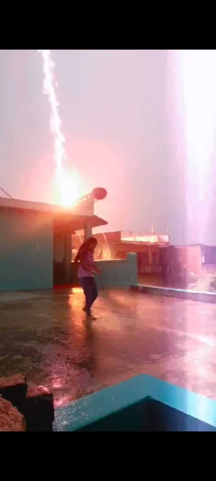 सीतामढ़ी. बुधवार की सुबह 10 बजे अजीबोगरीब घटना घटी. जिले के परिहार प्रखंड के सिरसिया बाजार निवासी मुखिया राघवेंद्र भगत उर्फ कमाल भगत की पुत्री सानिया कुमारी अपने पड़ोसी देवनारायण भगत की छत पर बारिश में स्नान कर रही थी. वहीं उसकी सहेली मोबाइल से उसका रील बना रही थी. उसी समय अचानक जोर का ठनका गिरा. ईश्वर की कृपा से वह बाल-बाल बची.
