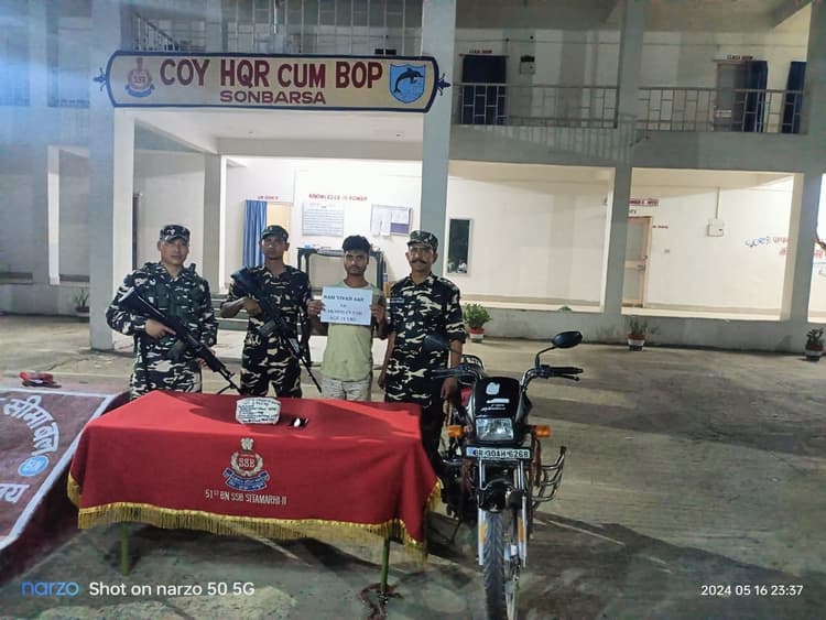 सोनबरसा(सीतामढ़ी). इंडो-नेपाल बॉर्डर पर तैनात सशस्त्र सीमा बल(एसएसबी) 51वीं बटालियन के अधिकारियों व जवानों ने गुरुवार की मध्य रात नरकटिया गांव स्थित पिलर संख्या 321 के समीप से नेपाल से तस्करी कर लायी जा रही अफीम की खेप बरामद की है. साथ ही बाइक सवार तस्कर को भी गिरफ्तार किया गया है. जिसकी पहचान थाना क्षेत्र की इंदरवा पंचायत के इंदरवा वार्ड नंबर 13 निवासी लक्ष्मण साह के पुत्र राम विवाह साह के रुप में की गयी है. कार्रवाई दल का नेतृत्व कर रहे नरकटिया बीओपी कंपनी कमांडर सहायक उप निरीक्षक मोहर चंद ने बताया कि तलाशी के दौरान तस्कर के हीरो स्पलेंडर बाइक (बीआर 30 एएच 6268) व कमर से 1.450 किलोग्राम अफीम बरामद की गयी है. कंपनी कमांडर ने बताया कि आरक्षी टी हौमियो अल्फाज़ मिंज पहले से घात लगाकर बैठे थे. उसी बीच नेपाल से तस्कर बाइक से भारतीय सीमा क्षेत्र में प्रवेश कर रहा था. उसी बीच जवानों ने आगे से घेरकर तलाशी ली, तो कमर में प्लास्टिक में बांधा हुआ अफीम बरामद की गयी. कैंप लाकर उससे पूछताछ की गयी, जिसमें बताया कि नेपाल के हेटौडा सुनसरी गांव निवासी रवि चौधरी के यहां से अफीम की उक्त खेप लेकर बेला थाना क्षेत्र के शिवनगर गांव निवासी लालबिहारी साह के पुत्र भिखारी साह यहां पहुंचाने जा रहे थे. जब्त अफीम, बाइक व गिरफ्तार तस्कर को स्थानीय थाना को सौंप दिया. थानाध्यक्ष मनीष कुमार ने बताया कि मादक द्रव्य एवं मनोतेजक पदार्थ अधिनियम धारा के तहत प्राथमिकी दर्ज कर गिरफ्तार तस्कर को न्यायिक हिरासत भेज दिया गया.