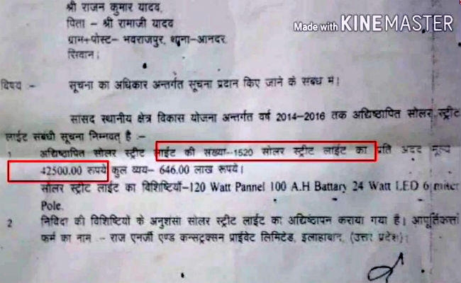 सोशल मीडिया पर सीवान के सांसद ओमप्रकाश यादव के खिलाफ एक वीडियो वायरल हो रहा है. वीडियो में बताया जा रहा है कि दूसरे प्रदेशों में उनकी सोलर कंपनी है. उसी कंपनी से उनके क्षेत्रों में सोलर की सप्लाई की जा रही है. यही सोलर उनके सांसद मद से लगाये जा रहे हैं. वीडियो के वायरल होने के बाद से जिले में तरह-तरह की चर्चा हो रही है. वीडियो में यह भी कहा जा रहा है कि आरटीआई से सूचना मांगने के बाद यह सब खुलासा हो रहा है. यह वीडियो सात मिनट से अधिक का है.