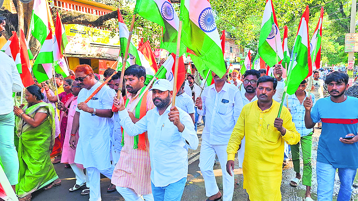 गुठनी. भाजपा शीर्ष नेतृत्व के आह्वान पर “हर घर तिरंगा ” अभियान के तहत गुरुवार को भारतीय जनता पार्टी की ओर से भव्य तिरंगा यात्रा निकाली गयी. यात्रा की शुरुआत भूतनाथ मंदिर परिसर से हुई, जहां कार्यकर्ताओं ने राष्ट्रध्वज के साथ देशभक्ति नारे लगाए. भाजयुमो कार्यकर्ता पूरे जोश और उत्साह से लबरेज नजर आये. यात्रा भूतनाथ मंदिर से निकलकर पटेल चौक, मुख्य बाजार होते हुए गुठनी चौराहा तक पहुंची, जहां इसका समापन हुआ. इस दौरान भारत माता की जय, वंदे मातरम् और जय हिंद के नारों से वातावरण देशभक्ति के रंग में रंग गया. यात्रा का उद्देश्य लोगों में राष्ट्रीय ध्वज के प्रति सम्मान और जागरूकता बढ़ाना था. भाजपा के स्थानीय पदाधिकारियों ने कहा कि तिरंगा हमारी शान है और इसके सम्मान की रक्षा हर नागरिक का कर्तव्य है. पूरे मार्ग पर तिरंगे के रंग बिखरे नजर आये और जगह-जगह लोगों ने यात्रा का स्वागत किया. कार्यक्रम में क्षेत्रीय नेताओं, सामाजिक कार्यकर्ताओं और आम जनता की सक्रिय भागीदारी रही. मौके पर सुभाष ठाकुर, समरजीत सिंह, दिलीप गुप्ता, नीतीश कुशवाहा, विनीत तिवारी, धर्मेंद्र सिंह समेत कई लोग मौजूद रहे.