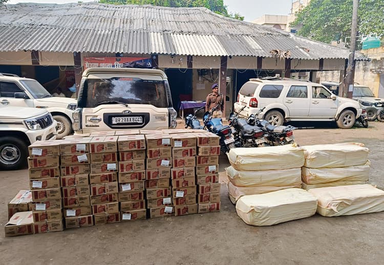 मैरवा. पैक्स चुनाव को लेकर सीमावर्ती इलाकों में थानाप्रभारी राकेश कुमार ने सघन जांच करने का निर्देश पुलिस पदाधिकारियों को दिया है, जिसके बाद पुलिस को शराब के मामले में अबतक की सबसे बड़ी सफलता मिली है. बरामद शराब की कीमत 10 लाख रुपये आंकी गयी है. गुरुवार को थानाप्रभारी के नेतृत्व में विशेष छापेमारी अभियान के तहत पुलिस ने एक स्काॅर्पियो और चार बाइक पर रखी भारी मात्रा में अंग्रेजी और देसी शराब को पकड़ा है. चालक और शराब तस्कर चकमा देकर फरार हो गये. पुलिस ने यह कार्रवाई धरनी छापर चेकपोस्ट और मैदनिया झरही पुल के समीप से की है. पुलिस ने स्काॅर्पियो से 949 लीटर ऑफिसर च्वाइस एवं चार बाइक से 576 लीटर बंटी बबली शराब बरामद की. वहीं, पुलिस स्काॅर्पियो और चारों बाइकों को जब्त कर नंबर प्लेट की जांच करने में जुटी हुई है. पुलिस को शराब तस्कर का दो मोबाइल हाथ लगा है, जिसकी जांच की जा रही है. इस संबंध में थानाप्रभारी राकेश कुमार ने बताया कि विशेष छापेमारी के दौरान यह कार्रवाई की गयी है. पुलिस ने भारी मात्रा में शराब के साथ एक स्काॅर्पियो और चार बाइक तथा दो स्मार्ट फोन बरामद किये हैं. पुलिस शराब माफियाओं को पहचान करने के लिए मोबाइल और गाड़ी नंबर की जांच करने में जुटी हुई है.