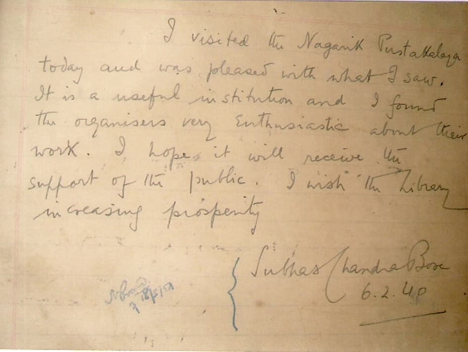 पुस्तकालय में आज भी उपलब्ध है सुभाष चंद्र बोस का संदेश