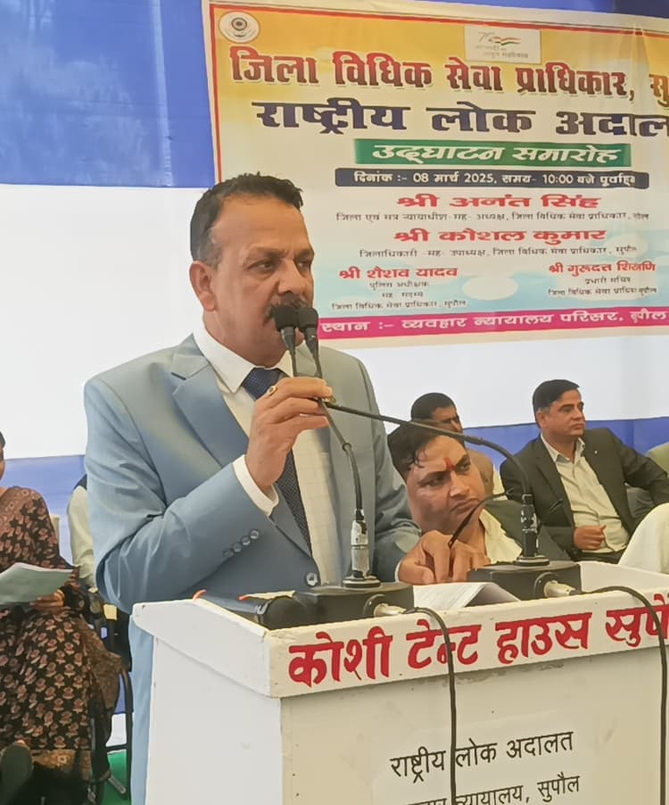 सुपौल. व्यवहार न्यायालय परिसर में शनिवार को साल का पहला राष्ट्रीय लोक अदालत का आयोजन किया गया. जिसका उद्घाटन प्रधान जिला एवं सत्र न्यायाधीश अनंत सिंह, जिला एवं अपर सत्र न्यायाधीश प्रथम गजनफर हैदर, डीएम कौशल कुमार, पुलिस अधीक्षक शैशव यादव, जिला विधिक सेवा प्राधिकार के प्रभारी सचिव गुरुदत शिरोमणि सहित अन्य न्यायाधीशों ने संयुक्त रूप से दीप प्रज्ज्वलित कर किया. लोक अदालत को लेकर व्यवहार न्यायालय परिसर में हेल्प डेस्क बनाया गया. वहीं वादों के निबटारे को लेकर 12 बैंच का गठन किया गया था. सभी बैंचों पर न्यायिक पदाधिकारी मौजूद थे. न्यायालय परिसर में मेडिकल टीम की नियुक्ति भी की गयी थी. वहीं लोक अदालत को लेकर कोर्ट परिसर में सुरक्षा के पुख्ता इंतजाम किये गये थे. मौके पर प्रिंसिपल जज परिवार न्यायालय राहुल उपाध्याय, एडीजे टू निशिकांत ठाकुर, एडीजे थ्री सुनील कुमार, पोक्सो कोर्ट के विशेष न्यायाधीश ब्रिज किशोर सिंह, एडीजे पांच संतोष दूबे, एडीजे आठ तरूण कुमार झा, विशेष न्यायाधीश उत्पाद अभिषेक मिश्रा, प्रधान मजिस्ट्रेट अरविंद मिश्रा, भवेश कुमार, चेतन आनंद, राखी कुमारी, विधिज्ञ संघ के अध्यक्ष नागेंद्र नारायण ठाकुर, सचिव दीप नारायण भारती, पंकज झा, सौरभ मोहन ठाकुर, सन्नी कुमार आदि मौजूद थे. स्वागत भाषण सुदीप पांडे ने किया. धन्यवाद ज्ञापन स्वाती चतुर्वेदी ने किया. जबकि संचालन न्यायिक दंडाधिकारी प्रथम सुदीप पांडे ने किया. राष्ट्रीय लोक अदालत में सुपौल व्यवहार न्यायालय में 12 बेंच तथा वीरपुर न्यायालय में 04 बेंच था. लोक अदालत में सुपौल व वीरपुर में कुल 1099 वादों का निष्पादन किया गया. जिसमें 03 करोड़ 67 लाख 65 हजार 70 रुपये का समझौता हुआ. प्री लिटीगेशन में कुल 834 वादों का निबटारा किया गया. जिसमें 02 करोड़ 90 लाख 69 हजार 270 तथा पोस्ट लिटीगेश में 265 वादों का निबटारा किया गया. जिसमें 76 लाख 95 हजार 800 रुपये का समझौता हुआ. आपसी समन्वय से मामलों को होता है निष्पादन : जिला जज प्रधान जिला एवं सत्र न्यायाधीश अनंत सिंह ने कहा कि लोक अदालत बिना आपसी सहभागिता के एवं बड़ा मन किये हुए कभी सफल नहीं हो सकता. दूसरा कोई कुछ भी प्रयास कर ले, लेकिन जब तक पक्षकारगण दिल खोल कर एवं अपना बड़ा मन नहीं रखेंगे और जब तक आपस में समन्वय स्थापित नहीं करेंगे तब तक हमलोगों का कोई भी प्रयास सफल नहीं होगा. उन्होंने लोगों से अपील करते कहा कि आपलोग अपने-अपने मुकदमे को समाप्त कर लें. यह सुनहरा अवसर है कि एक दिन में मुकदमा खत्म हो जायेगा और फिर इसका कभी कहीं अपील भी नहीं होगा. वहीं लोक अदालत में मौजूद बैंक कर्मियों से कहा कि पक्षकारों से समन्वय स्थापित कर बैंक से संबंधित मामले का अधिक से अधिक निष्पादन हो, इसको लेकर प्रयास करें. जिससे कोई भी व्यक्ति यहां से ना उम