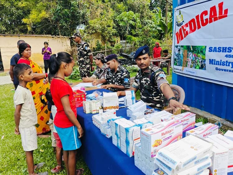 वीरपुर. 45वीं बटालियन एसएसबी द्वारा बुधवार को सीमा चौकी भीमनगर के वार्ड नंबर 06 स्थित मध्य विद्यालय परिसर में मानव चिकित्सा शिविर लगाया गया. जहां 110 लोगों का इलाज कर उचित परामर्श दिया गया. जानकारी देते हुए 45 वीं बटालियन के कमांडेंट गौरव सिंह ने बताया कि नागरिक कल्याण कार्यक्रम के अंतर्गत एसएसबी द्वारा अनेक प्रकार के कार्यक्रम समय समय पर आयोजित किए जाते है. ताकि सीमा पर रहने वाले ग्रामीणों को लाभ मिल सके. इस कार्यक्रम के अन्तर्गत बुधवार को सीमा चौकी भीमनगर क्षेत्र में वार्ड नंबर 06 स्थित मध्य विद्यालय में मानव चिकित्सा शिविर का आयोजन किया गया. शिविर में मुफ्त चिकित्सा सुविधा दी गयी. शिविर का संचालन 18 वीं बटालियन राजनगर के चिकित्सा अधिकारी डॉ. रवि कुमार, सहायक कमांडेंट (चिकित्सा) के द्वारा किया गया. इस कार्यक्रम के तहत 43 पुरुष, 39 महिला तथा 28 बच्चे कुल 110 नागरिकों का इलाज कर मुफ्त में दवा दी गयी.