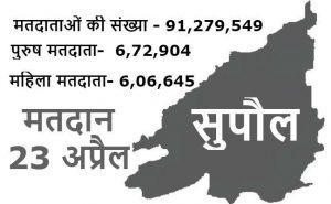 सुपौल संसदीय सीट पर लोकसभा चुनाव के तीसरे चरण के तहत 23 अप्रैल को मतदान होगा. इस संसदीय क्षेत्र में मतदाताओं की संख्या 1,279,549 है, जिसमें से 6,72,904 पुरुष और 6,06,645 महिला मतदाता हैं. महागठबंधन में सीटों के बंटवारे के तहत यह सीट कांग्रेस को मिली, जिसने यहां से रंजीत रंजन को उम्मीदवार बनाया है. रंजीत रंजन जन अधिकार पार्टी के अध्यक्ष और मधेपुरा से सांसद पप्पू यादव की पत्नी हैं. कहा जा रहा है कि इस सीट पर निर्दलीय उम्मीदवार दिनेश प्रसाद यादव को राजद का परोक्ष समर्थन है. इसका स्पष्ट संकेत तब मिला, जब पिछले शनिवार को सुपौल में कांग्रेस अध्यक्ष राहुल गांधी की रैली में राजद नेता तेजस्वी यादव शामिल नहीं हुए. दिनेश प्रसाद यादव का पिपरा विधानसभा क्षेत्र में खासा प्रभाव माना जाता है. रंजीत रंजन का मुकाबला राजग के उम्मीदवार दिलेश्वर कमैत से है. कमैत अति पिछड़ा वर्ग की केवट जाति से आते हैं, जबकि रंजीत रंजन यादव समुदाय से आती हैं. निर्दलीय दिनेश प्रसाद यादव भी यादव समुदाय से आते हैं. ऐसे में कांग्रेस को निर्दलीय उम्मीदवार दिनेश प्रसाद यादव से वोट कटने की आशंका है.