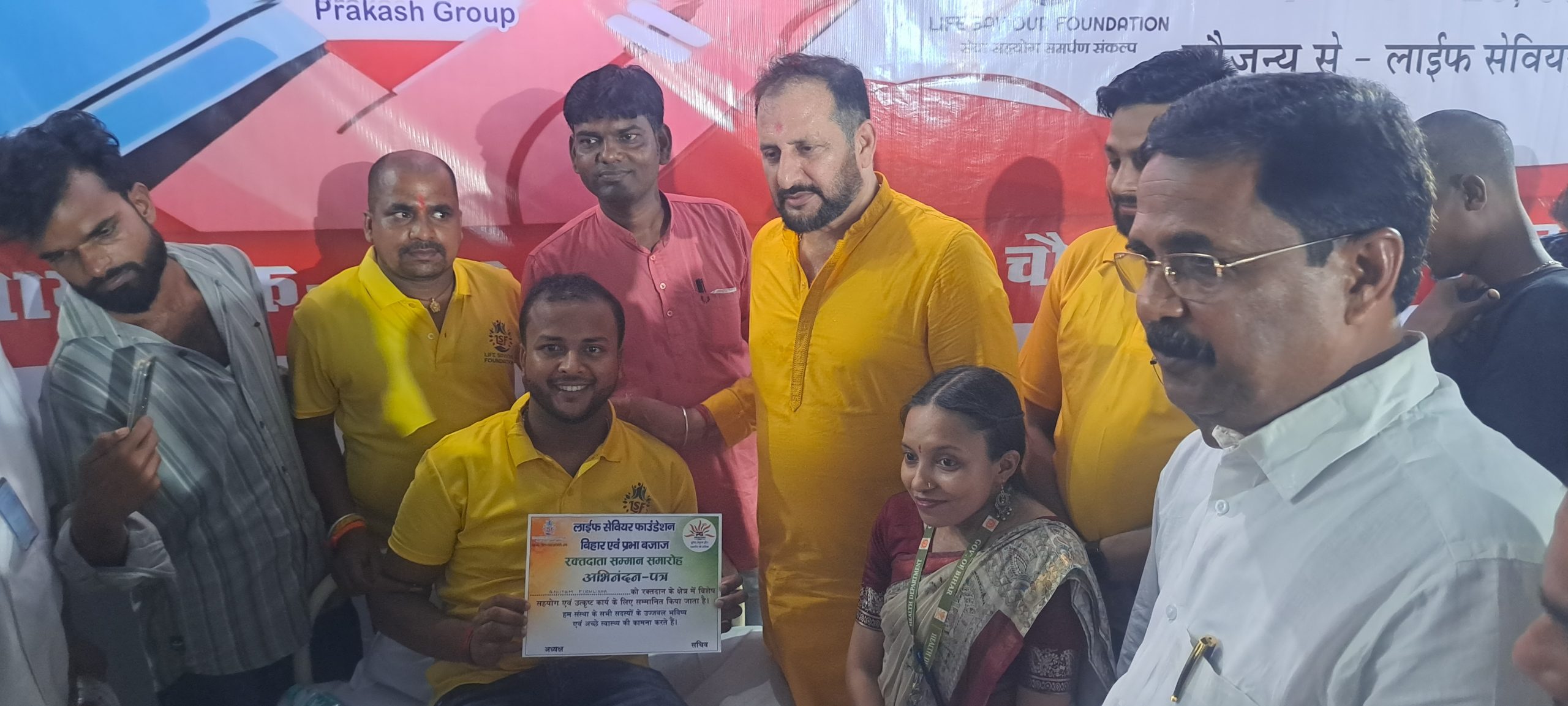 मंत्री ने शिविर का किया उद्घाटन छातापुर. मुख्यालय स्थित एक बाइक शोरूम शुभारंभ के मौके पर सोमवार को रक्तदान शिविर का आयोजन किया गया. समाजसेवी संस्था लाइफ सेवियर फाउंडेशन बिहार के तत्वाधान में आयोजित शिविर का उद्घाटन स्थानीय विधायक सह बिहार सरकार के मंत्री नीरज कुमार सिंह बबलू ने फीता काटकर किया. मौके पर नगर परिषद सुपौल के मुख्य पार्षद राघवेंद्र झा राघव, फाउंडेशन के अध्यक्ष मनीष राज सहित जनप्रतिनिधि व गणमान्य लोग मौजूद थे. रक्तदान शिविर में कई समाजसेवी एवं रक्तवीर युवाओं ने रक्तदान कर मानवता का परिचय दिया. इस अवसर पर मंत्री श्री बबलू ने रक्तदान करने वाले लोगों की खूब तारीफ की. कहा कि रक्तदान महादान है. इससे बड़ा कोई दान नहीं होता है. रक्त जरूरतमंदों को जीवन प्रदान करता है. वहीं लाइफ सेवियर फाउंडेशन की सरहना करते कहा कि मानव सेवा के क्षेत्र में यह संस्था बेहतर कार्य कर रही है. फाउंडेशन के अध्यक्ष मनीष राज ने बताया कि शिविर में कुल 15 रक्तवीरों ने 15 यूनिट रक्तदान किया है. डोनेट ब्लड को थैलीसिमिया पीड़ित बच्चों के लिए सदर अस्पताल सुपौल को सुपुर्द किया गया है. सदर अस्पताल में फिलहाल थैलीसिमिया पीड़ित 45 बच्चे पंजीकृत है. जिन्हें नियमित रूप से ब्लड की आवश्यकता रहती है. बताया कि आने वाले समय में जदिया सहित अन्य स्थानों पर भी रक्तदान शिविर का आयोजन किया जायेगा. मौके पर डॉ हलधर प्रसाद दास, विजय प्रकाश, रमेश सिंह, शंभू साह, अमरेंद्र सिंह, अनूप जायसवाल, शालीग्राम पांडेय, सुशील कर्ण, केशव कुमार गुड्ड, पवन कुमार हजारी, गौरीशंकर भगत, सूरज चंद्र प्रकाश, डॉ क्रांति गांधी, सत्यप्रकाश, गुंजन भगत, रामटहल भगत, सुजीत सिंह, राजा दास, संजय तालुकदार, लक्ष्मी रंजन, डिंपल साह, संतोषी भगत, अनुपम कुशवाहा, विधान कुमार, अंबेडकर कुमार, प्रिंस मेहता, अमोद पासवान आदि मौजूद थे.