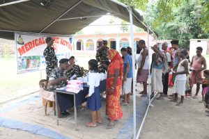 सुपौल. एसएसबी 45वीं बटालियन ने सीमा चौकी रिफ़्यूजी कॉलोनी के वार्ड नंबर 03 क्षेत्र में शुक्रवार को निःशुल्क मानव चिकित्सा शिविर का आयोजन किया गया. जानकारी देते हुए कमांडेंट गौरव सिंह ने बताया कि एसएसबी सीमा की सुरक्षा के साथ साथ भारत सरकार द्वारा चलाये जा रहे अनेकों कार्यक्रम को भी अपनी देख-रेख में संचालित करती है. इन्हीं में से एक है सीमा क्षेत्र में रहने वाले लोगो के लिए “शुल्क मानव चिकित्सा शिविर कार्यक्रम” जिसके अंतर्गत सीमा पर रहने वाले ग्रामीणों को चिकित्सकीय लाभ प्रदान किया जाता है. शुक्रवार इसी क्रम में ग्राम रिफ़्यूजी कॉलोनी वार्ड नंबर 03 क्षेत्र में निःशुल्क मानव चिकित्सा शिविर कार्यक्रम आयोजित किया गया. इसके अंतर्गत आस-पास के क्षेत्रों में रहने वाले ग्रामीणों को मुफ्त चिकित्सा के साथ साथ मुफ्त दवाइयों का भी वितरण किया गया है. 45वी बटालियन एसएसबी के डॉ अभिषेक भारद्वाज सहायक कमांडेंट द्वारा मानव चिकित्सा शिविर में 49 पुरुष, 44 महिला एवं 59 बच्चों सहित कुल 152 लोगों का इलाज किया गया.