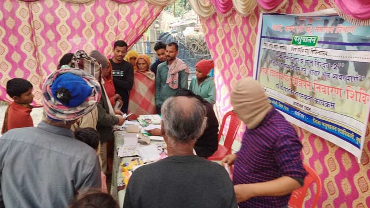 सरायगढ़. प्रखंड क्षेत्र के मुरली पंचायत के वार्ड नंबर 01 में शुक्रवार को आत्मनिर्भर बिहार के सात निश्चय 02 के तहत बेहतर पशु स्वास्थ्य प्रबंधन को लेकर आधारभूत व्यवस्थाएं के तहत एक दिवसीय पशु बांझपन निवारण शिविर एवं पशुपालक जागरूकता कार्यक्रम प्रथम वर्गीय पशु चिकित्सालय लालगंज के सौजन्य से पशु बांझपन शिविर का आयोजन किया गया. पशु बांझपन शिविर का उद्घाटन मुरली पंचायत के वार्ड सदस्य फूलो देवी, पशु चिकित्सा पदाधिकारी डॉ अमिताभ कुमार लालगंज द्वारा संयुक्त रूप से फीता काट कर उद्घाटन किया गया. पशु बांझपन शिविर में कुल 87 पशुपालकों के 181 मवेशियों का इलाज कर नि:शुल्क रूप से दवा का वितरण किया गया. पशुपालकों के बीच शिविर को लेकर काफी उत्साह था. बांझपन शिविर में करीब 50 पशुओं का गर्भ जांच कर नि:शुल्क रूप से दवा का वितरण किया गया. पशु बांझपन शिविर का निरीक्षण जिला पशुपालन पदाधिकारी डॉ प्रमोद कुमार सिंह द्वारा किया गया. शिविर में इस मौके पर पशु चिकित्सा पदाधिकारी लालगंज डॉ अमिताभ कुमार, डॉ संजय कुमार, बैजू पाल, राम नरेश कुमार, राजेश रंजन और विवेक कुमार मौजूद थे.