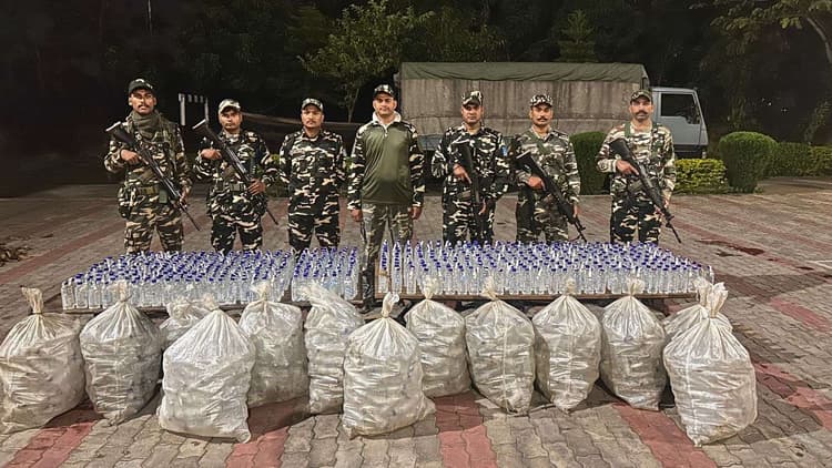 – इंडो-नेपाल सीमा पर एसएसबी और बिहार पुलिस ने की संयुक्त कार्रवाई – एक लाख नेपाली रुपये भी बरामद, चुनाव को लेकर चलाया जा रहा विशेष अभियान वीरपुर. एसएसबी जवानों ने नेपाली शराब, ब्राउन शुगर व नेपाली मुद्रा जब्त किया है. इस दौरान जवानों ने तीन लोगों को गिरफ्तार किया. कमांडेंट गौरव सिंह ने बताया कि विधानसभा चुनाव के दौरान अवैध कार्य पर अंकुश लगाने के लिए लगातार कार्रवाई की जा रही है. उन्होंने बताया कि गुरुवार को सीमा चौकी पिपराही के जवानों ने गुप्त सूचना पर 1920 बोतल नेपाली शराब बरामद किया. हालांकि इस दौरान तस्कर मौके से फरार हो गया. उन्होंने बताया कि गुप्त सूचना मिली की कोसी नदी के स्पर संख्या 1237 के पास नदी के रास्ते नेपाल से तस्कर शराब की खेप लेकर आने वाले हैं. सूचना मिलते ही टीम का गठन कर जवानों को मौके पर भेजा गया. वहां पहुंचने पर जवानों ने देखा कि कोसी नदी के रास्ते एक नाव आ रही है. नाव पर सवार लोग नदी के किनारे नाव लगाकर उसमें रखे सामान को उतार रहे थे. इस दौरान जैसे ही जवानों पर उनकी नजर पड़ी सभी कोसी नदी में छलांग लगाकर फरार हो गए. जवानों ने जब नाव की तलाशी ली तो 1920 बोतल नेपाली शराब बरामद हुआ. उन्होंने बताया कि जब्त नेपाली शराब और नाव को रतनपुर थाना को सौंप दिय गया है. वहीं बुधवार को कुनौली सीमा चौकी के जवान और बिहार पुलिस ने विशेष जांच अभियान के दौरान भारत से नेपाल की ओर जाती एक संदिग्ध महिला को रोककर तलाशी ली तो उसके पास से सात बोतल नेपाली शराब बरामद हुआ. जवानों ने मौके से महिला को गिरफ्तार कर लिया. जब्त शराब और गिरफ्तार महिला को कुनौली थाना को सौंप दिया गया है. वहीं एसएसबी सीमा चौकी भीमनगर के जवान और बिहार पुलिस ने संयुक्त जांच अभियान के दौरान 118 नग नशीली दवा और 67 ग्राम ब्राउन शुगर के साथ एक तस्कर को गिरफ्तार किया. इसके अलावा बुधवार को सीमा चौक न्योर और बिहार पुलिस ने संयुक्त जांच अभियान के दौरान एक व्यक्ति को एक लाख नेपाली रुपए के साथ गिरफ्तार किया. उन्होंने बताया कि भारत से नेपाल जाते एक व्यक्ति को संदेह के आधार पर रोककर तलाशी ली गई तो उसके पास से एक लाख नेपाली रुपए बरामद हुआ. पूछताछ में कोई संतोषजनक जवाब नहीं मिलने पर रुपए को जब्त कर उसे गिरफ्तार कर लिया गया. उन्होंने बताया कि गिरफ्तार व्यक्ति कमलपुर निवासी अब्दुल रजक और जब्त रुपए को अंध्रामठ थाना को सौंप दिया गया.