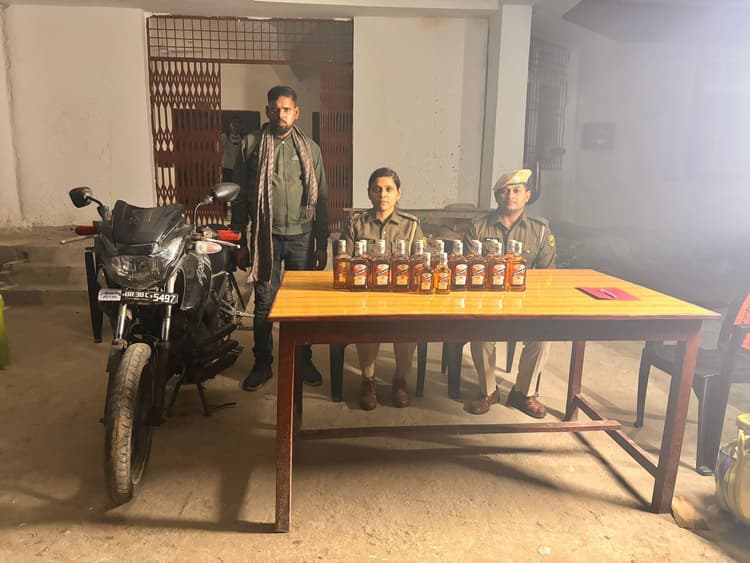 बलुआ बाजार. ललितग्राम पुलिस ने गुरुवार की देर रात एनएच 27 मुख्य मार्ग पर मिरचईया नदी के समीप गुप्त सूचना के आधार पर 21 बोतल विदेशी शराब बरामद किया. एक तस्कर की भी गिरफ्तार हुई है. गिरफ्तार तस्कर की पहचान नरपतगंज थाना क्षेत्र के पलासी वार्ड नंबर 01 निवासी प्रमोद यादव के पुत्र धीरज यादव के रूप में हुई है. एक अपाचे बाइक भी जब्त की गयी है. जानकारी मुताबिक ललितग्राम पुलिस को गुप्त सूचना मिली कि एनएच 27 मुख्य मार्ग के रास्ते सिमराही की ओर एक अपाचे बाइक पर तस्कर शराब लेकर जा रहा है. इसी क्रम में पुलिस एनएच 27 मार्ग के क्वार्टर चौक पर पहुंची. जहां संदिग्ध बाइक सवार को देख उसे रोकने का प्रयास किया, लेकिन पुलिस को देखकर तस्कर अपनी बाइक को लेकर सिमराही की ओर तेज रफ्तार में भागने लगा. जिसके बाद पुलिस उसका पीछा कर मिरचईया नदी के समीप पकड़ लिया. जांच के क्रम में पुलिस ने 375 एमएल के 19 बोतल व 180 मिली के दो बोतल सहित कुल 21 बोतल अंग्रेजी शराब बरामद किया. ललितग्राम थानाध्यक्ष संजना कुमारी ने बताया कि गुप्त सूचना के आधार पर 21 बोतल अंग्रेजी शराब के साथ एक तस्कर को गिरफ्तार किया गया. तस्कर को न्यायिक हिरासत में सुपौल भेज दिया गया.