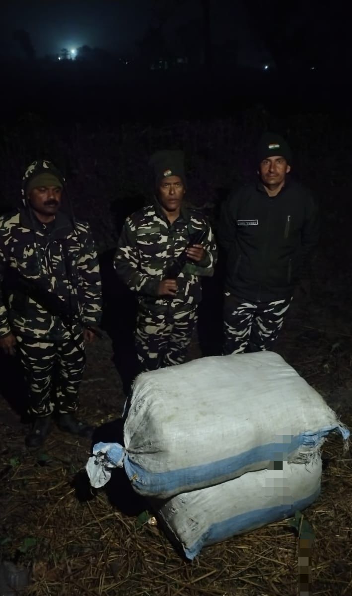 सुपौल. सशस्त्र सीमा बल की 45वीं वाहिनी की सीमा चौकी भीमनगर ने नशीले पदार्थों की तस्करी के विरुद्ध बड़ी कार्रवाई करते हुए शुक्रवार की अहले सुबह 52 किलोग्राम गांजा जब्त किया. इस संबंध में जानकारी देते हुए कमांडेंट गौरव सिंह ने बताया कि गुप्त सूचना मिली थी कि ग्राम मोदीग्राम, सीमा स्तंभ संख्या 207/9 के समीप, भारत-नेपाल अंतरराष्ट्रीय सीमा से लगभग 2.5 किलोमीटर भारतीय क्षेत्र के अंदर मादक पदार्थों की तस्करी की संभावना है. सूचना की गंभीरता को देखते हुए उप निरीक्षक हमीर सिंह भाटी के नेतृत्व में एक नाका दल का गठन किया गया. नाका दल ने संदिग्ध स्थान पर पहुंचकर स्वयं को छिपाते हुए नाका लेआउट किया. कुछ समय बाद नाका दल ने देखा कि दो व्यक्ति सिर पर सामान लादकर आ रहे हैं. नाका दल द्वारा रुकने की चेतावनी दिए जाने पर तस्कर सामान फेंककर घने कोहरे और रात्रि का फायदा उठाते हुए नेपाल प्रभाग की ओर फरार हो गए. बरामद सामान की विधिवत तलाशी के दौरान दो बोरों में कुल 52 किलोग्राम गांजा बरामद किया गया, जिसमें प्रत्येक बोरे का वजन लगभग 26 किलोग्राम था. इस कार्रवाई में नाका पार्टी में उप निरीक्षक हमीर सिंह भाटी सहित 07 अन्य एसएसबी जवान शामिल थे. बरामद गांजा को आवश्यक कानूनी औपचारिकताएं पूर्ण करने के उपरांत थाना भीमनगर को अग्रिम कार्रवाई हेतु सौंपा जाएगा.