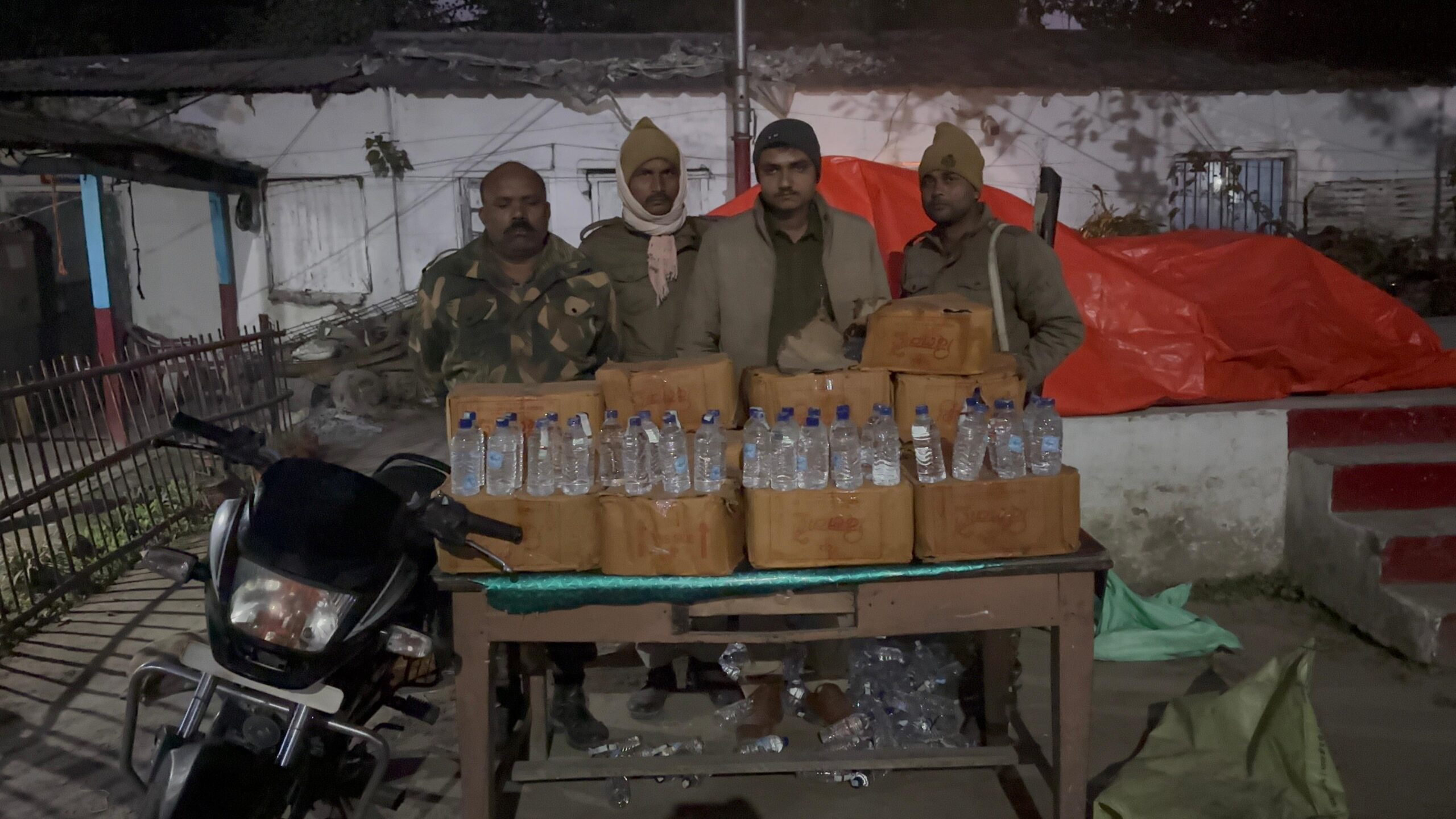 वीरपुर. थाना की पुलिस ने गुप्त सूचना के आधार पर बनेलीपट्टी पंचायत के विश्वकर्मा चौक से 570 बोतल शराब जब्त किया है. मौके से तस्कर फरार हो गया. जानकारी देते हुए वीरपुर थानाध्यक्ष राज किशोर मंडल ने बताया कि गुप्त सूचना मिली थी कि नेपाल से शराब की तस्करी होने वाली है. सूचना के आधार पर पुलिस टीम का गठन कर निर्धारित रास्ते पर तलाशी तेज की गई. इसी क्रम में एक बाइक सवार अपने बाइक पर 19 कार्टून शराब लेकर आ रहा था. पुलिस की गाड़ी ने जब पीछा किया तो शराब कारोबारी शराब और बाइक छोड़ कर मौके से फरार हो गया. जब्त शराब और बाइक को थाना लाया गया. थाने में गिनती करने पर कुल 19 कार्टून में प्रत्येक कार्टून में 30 बोतल यानि कुल 570 बोतल शराब पाई गई. जिसकी मात्रा 171 लीटर हुई. मामले को लेकर अप्राथमिकी कांड दर्ज करते हुए तस्कर की पहचान की गई है. आगे की कार्रवाई की जा रही है.