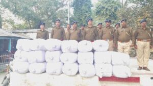 गांजा अनिसुर रहमान शुभंकरपुर वार्ड संख्या 10 वीरपुर के मक्का लगे खेत से 20 बोरियों में छिपाकर रखा गया था