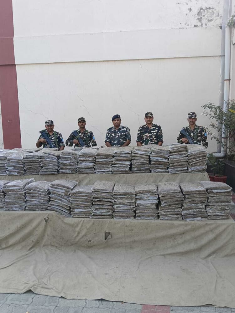 सरायगढ़. एसएसबी 45वीं बटालियन ने भारत-नेपाल सीमा पर तस्करी की बड़ी कोशिश को नाकाम करते हुए 650.900 किलोग्राम गांजा जब्त किया है. यह कार्रवाई शुक्रवार की देर रात नरपतपट्टी सीमा चौकी क्षेत्र में की गई. 45वीं बटालियन के कमांडेंट गौरव सिंह ने जानकारी देते हुए बताया कि सीमा पार से होने वाली तस्करी पर अंकुश लगाने के लिए एसएसबी के अधिकारी व जवान लगातार सतर्क हैं. इसी मुस्तैदी का परिणाम है कि इतनी बड़ी मात्रा में मादक पदार्थ को जब्त करने में सफलता मिली. सूचना मिली थी कि सीमा स्तंभ संख्या 221 से लगभग 04 किलोमीटर भीतर, स्पर संख्या 24 किमी के सामने नदी पार रेत के बीच भारी मात्रा में गांजा छिपाकर रखा गया है. सूचना की पुष्टि होने पर सहायक कमांडेंट राज कुमार के नेतृत्व में एक नाका दल गठित किया गया जिसने चिह्नित क्षेत्र की घेराबंदी कर तलाशी अभियान चलाया. लगभग आधे घंटे की तलाशी के बाद दल को सफेद रंग की बोरियों में संदिग्ध सामग्री मिली, जिससे गांजा जैसी दुर्गंध आ रही थी. बोरियों के अंदर सफेद प्लास्टिक की थैलियों में पैक मादक पदार्थ रखा हुआ था. नारकोटिक्स डिटेक्शन मशीन से जांच करने पर पुष्टि हुई कि सभी पैकेट्स में गांजा मौजूद था. कुल वजन 650.900 किलोग्राम पाया गया. तलाशी के दौरान तस्करों की तलाश भी की गई, पर वे मौके से फरार थे. एसएसबी की टीम ने बरामद गांजा जब्त कर भपटियाही थाना, सुपौल को सौंप दिया, जहां आगे की कानूनी प्रक्रिया जारी है. कमांडेंट श्री सिंह ने बताया कि इस पूरी कार्रवाई के दौरान एसएसबी की टीम ने निडरता और दक्षता के साथ कार्य किया, जो तस्करी पर करारा प्रहार है और देश की सुरक्षा व्यवस्था को सुदृढ़ करने की दिशा में एक बड़ी उपलब्धि है.