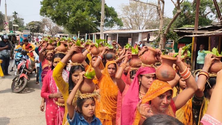 वीरपुर. चैत्र नवरात्रा को लेकर बसंतपुर प्रखंड के भीमनगर पंचायत अंतर्गत वार्ड संख्या 11 स्थित शिवदुर्गा मंदिर परिसर से गुरुवार को भव्य कलश शोभायात्रा निकाली गई. कलश शोभा यात्रा मंदिर परिसर से निकलकर नया बाजार, भीमनगर थाना और कस्टम कार्यालय होते महावीर चौक तक गई. जहां से एसएसबी भीमनगर चेक पोस्ट पार करते हुए कोसी बराज पहुंची. पुनः कोसी बराज स्थित कोसी नदी से जल भरकर पैदल मंदिर परिसर पहुंची. इस दौरान महिलाओं और युवतियां में नवरात्रा को लेकर खास उत्साह देखा गया. सभी कलश को मंदिर में एकत्रित किया गया. जानकारी देते हुए मंदिर पूजा के कमेटी अध्यक्ष सह भीमनगर पंचायत के सरपंच दुर्गानंद सिंह ने कहा कि पिछले वर्ष की भांति इस साल भी चैत्र नवरात्रा को लेकर कलश शोभायात्रा निकाली गई थी. लगातार 10 दिनों तक भक्तिमय माहौल रहेगा. इस मौके पर पंडित रतनजय झा सहित अन्य मौजूद थे.