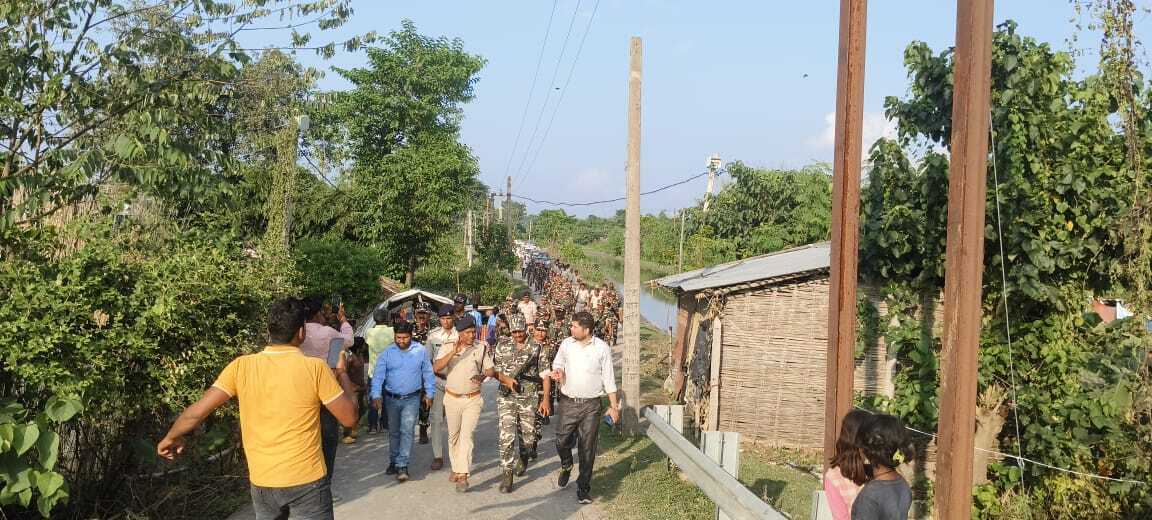 सरायगढ़. विधानसभा चुनाव को निष्पक्ष और भयमुक्त संपन्न कराने सहित आचार संहिता का सख्ती से पालन कराने लेकर प्रशासन ने मंगलवार को फ्लैग मार्च निकाला. फ्लैग मार्च भपटियाही थाना से निकलकर एनएच 327 ए होते हुए सरायगढ़ रेलवे स्टेशन, चांदपीपर, लालगंज, मुरली, पिपराखुर्द, शाहपुर पृथ्वीपट्टी, छिटही हनुमाननगर, लौकहा सहित अन्य पंचायतों का भ्रमण किया. इस दौरान लोगों को विधानसभा चुनाव में भयमुक्त होकर मतदान करने का संदेश दिया गया. मौके पर प्रखंड निर्वाची पदाधिकारी सह बीडीओ अच्युतानंद, सीओ धीरज कुमार, थानाध्यक्ष संजय दास सहित पुलिस बल और एसएसबी जवान शामिल थे. वहीं सोमवार को आचार संहिता लागू होने के बाद से ही प्रखंड निर्वाची पदाधिकारी सह बीडीओ अच्युतानंद, सीओ धीरज कुमार, थानाध्यक्ष संजय दास दल बल के साथ भपटियाही बाजार, सरायगढ़ रेलवे स्टेशन सहित अन्य जगहों पर घूम-घूम कर बैनर और पोस्टर हटाए.