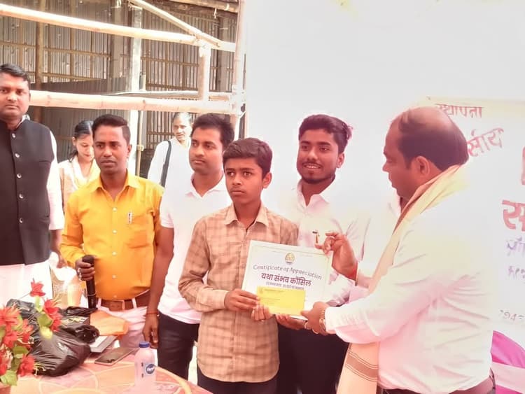 छातापुर. मुख्यालय स्थित पोस्ट ऑफिस चौक के समीप जीएस कोचिंग सेंटर में बुधवार को वीआईपी के राष्ट्रीय उपाध्यक्ष संजीव मिश्रा ने मैट्रिक परीक्षा में सफल छात्रों को सम्मानित किया. श्री मिश्रा द्वारा यथासंभव काउंसिल के बैनर तले छात्रों को प्रशस्तिपत्र के साथ मेडल एवं पुरस्कार देकर सम्मानित किया गया. उन्होंने मैट्रिक परीक्षा में बेहतर प्राप्तांक वाले छात्र राज कुमार, रूकसार प्रवीण को सम्मानित कर उसके उज्जवल भविष्य की कामना की. इस मौके पर श्री मिश्रा ने कहा कि सीमित संसाधन के बावजूद कस्वाई इलाके के छात्र छात्राएं शिक्षा में उत्कृष्ट प्रदर्शन कर रहें हैं. शिक्षा से ही समाज में सकारात्मक परिवर्तन लाया जा सकता है. उन्होंने कहा कि आजादी के दशकों बाद भी यहां डिग्री महाविद्यालय की स्थापना नहीं हुई है. इसके कारण छात्र-छात्राओं को उच्च शिक्षा के लिए अन्य जिलों या राज्यों की ओर पलायन करना पड़ता है. यह इलाका शिक्षा के क्षेत्र में काफी पिछड़ा हुआ है. बीते कई वर्षों से छातापुर को शिक्षित, विकसित और समृद्ध बनाने में वे जुटे हुए हैं. उन्होंने विश्वास दिलाया कि आने वाले वर्षों में छातापुर विधानसभा क्षेत्र में डिग्री कॉलेज सहित उच्च शिक्षण संस्थानों की स्थापना करना उनकी प्राथमिकता होगी. मौके पर वीआईपी पार्टी के छातापुर विधानसभा प्रवक्ता विकास कुमार, विनय मंडल, हरी मिश्रा, मोनू , जयकुमार के अलावे कोचिंग सेंटर के संचालक सौरव कुमार भदेसवार, गुड्डू सागर, भूषण कुमार मंडल सहित कई अभिभावक मौजूद थे.
