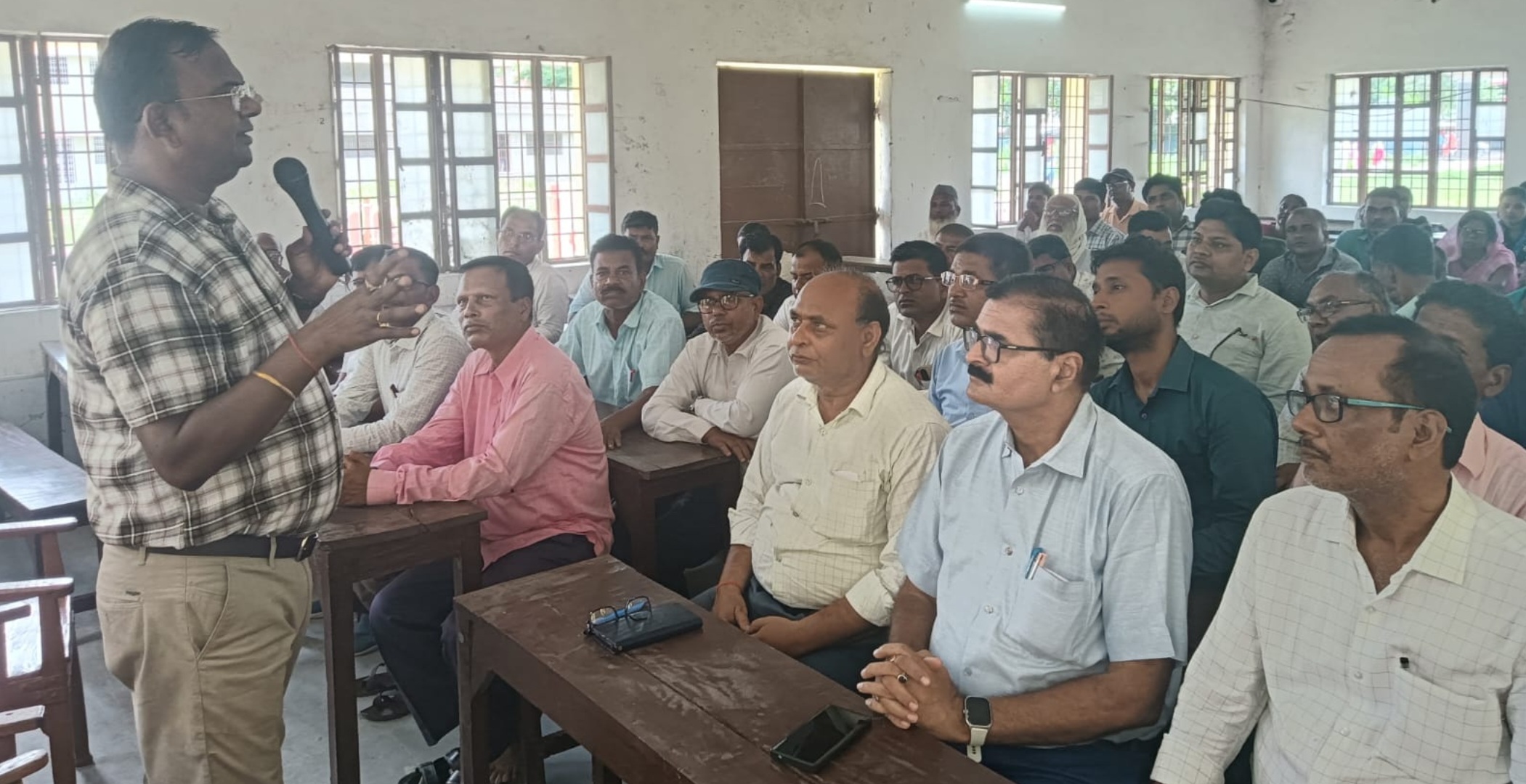 छातापुर. मुख्यालय स्थित सुरपत सिंह उच्च प्लस टू विद्यालय में गुरुवार को बीडीओ डॉ राकेश गुप्ता ने सरकारी शिक्षण संस्थानों के एचएम के साथ बैठक की. दो शिफ्टों में हुई बैठक में मतदाता विशेष गहन पुनरीक्षण अभियान की चर्चा करते निर्वाचन आयोग के दिशा निर्देश से अवगत कराया. बीएलओ से प्राप्त गणना फार्म भरकर अविलंब जमा करने का निर्देश दिया. बैठक में प्राथमिक, मध्य, उच्च माध्यमिक, प्लस टू के अलावे संस्कृत एवं मदरसा के एचएम सहित कंप्यूटर शिक्षक व आइसीटी इंस्ट्रेक्टर शामिल हुए. बैठक में बीडीओ ने कहा कि छातापुर विधानसभा क्षेत्र के निवासी शिक्षक अपने और पारिवारिक सदस्यों का गणना फार्म में विवरण भरकर अविलंब जमा करने को कहा. बताया कि विधानसभा क्षेत्र के बाहर के निवासी शिक्षकों को विद्यालय के आसपास के बूथ के बीएलओ से संपर्क कर प्रपत्र आठ भरकर अपना नाम जुड़वाना है. यह भी बताया अपने पोषक क्षेत्र के अभिभावकों एवं अन्य मतदाताओं के पुनरीक्षण कार्य के लिए प्रेरित भी करना है. बैठक में पीएम पोषण योजना के प्रखंड साधनसेवी विनोद कुमार राम, एस एस उच्च प्लस टू के एचएम गुरुचरण पासवान भी मौजूद थे.