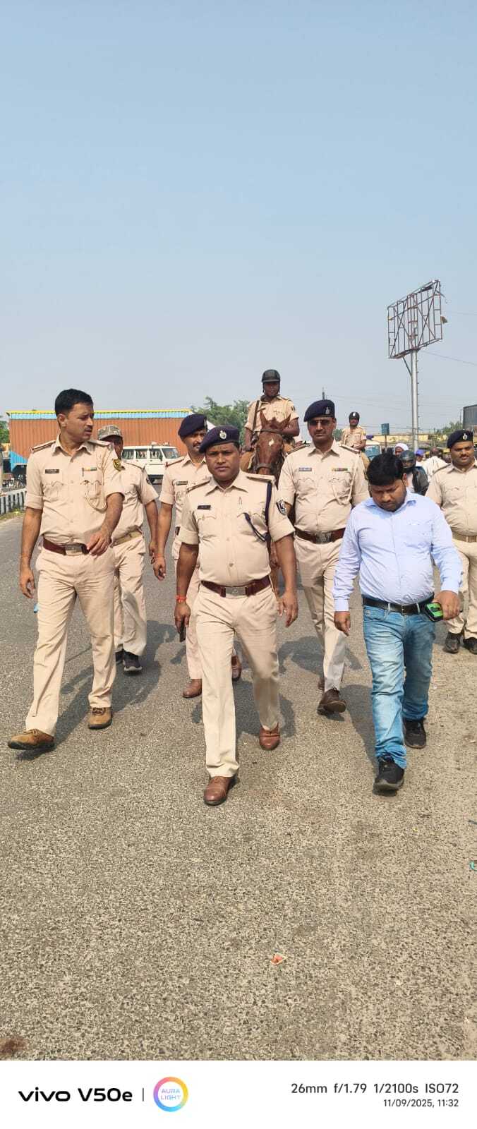 सरायगढ़ विधानसभा चुनाव को निष्पक्ष और भयमुक्त वातावरण में संपन्न कराने और आचार संहिता का सख्ती से पालन करने को लेकर प्रशासन ने रविवार को विशेष सशस्त्र पुलिस घुड़सवार दस्ता और अर्द्धसैनिक बल के साथ फ्लैग मार्च निकाला. फ्लैग मार्च थाना से निकलकर एनएच 327 ए होते हुए भपटियाही बाजार, सरायगढ़, चांदपीपर, लालगंज, शाहपुर पृथ्वीपट्टी, छिटही हनुमाननगर, लौकहा सहित अन्य पंचायतों का भ्रमण कर लोगों को विधानसभा चुनाव में भयमुक्त होकर मतदान करने का संदेश दिया गया. इस दौरान पुलिस बल ने आसपास के संवेदनशील इलाके में गश्त की और लोगों से शांति और सहयोग की अपील की. इस दौरान पुलिस और प्रशासनिक अधिकारियों ने वाहनों की जांच भी की. अधिकारियों ने निर्देश दिया कि चुनाव के दौरान किसी भी प्रकार की अवैध गतिविधि, हथियार, शराब या प्रतिबंधित सामग्री पर सख्त निगरानी रखी जाएगी. मौके पर थानाध्यक्ष संजय दास, एएसआई जेपी सिंह, मनु कुमार आदि मौजूद थे.