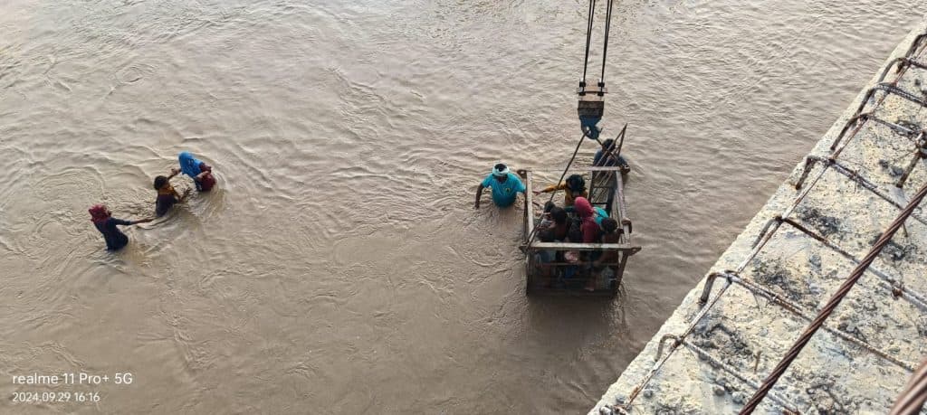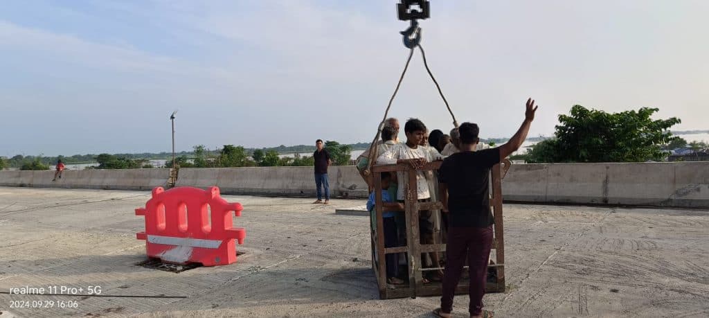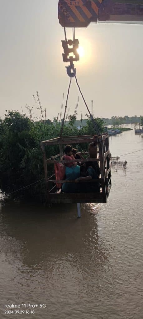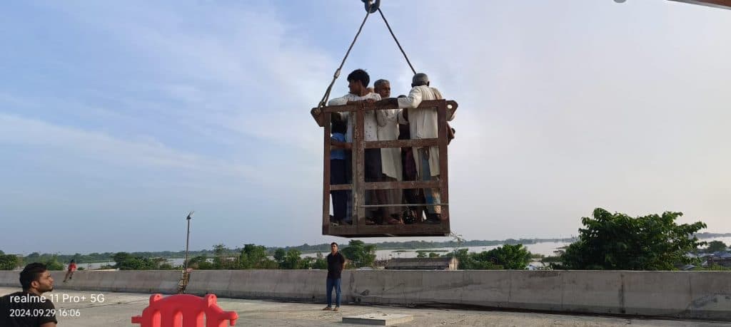 ऐसा बताया जा रहा है पुल के समीप मरीचा गांव में सौ से अधिक लोग अत्यधिक पानी आने के कारण फंसे हैं. जिसमें 40 से अधिक बच्चे शामिल थे. पुल के कर्मियों को जैसे हीं पता चला वे लोग अपने मशीन के सहारे सभी को रेस्क्यू किए.