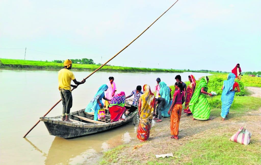 भाड़े के नाव के सहारे हो रहा आवागमन