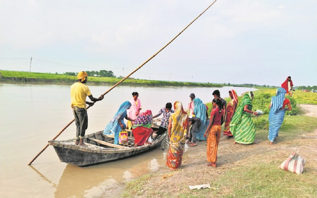 भाड़े के नाव के सहारे हो रहा आवागमन