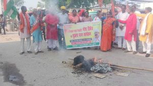 पुतला दहन के समय कार्यकर्ताओं द्वारा गगन भेदी नारे लगाए गए