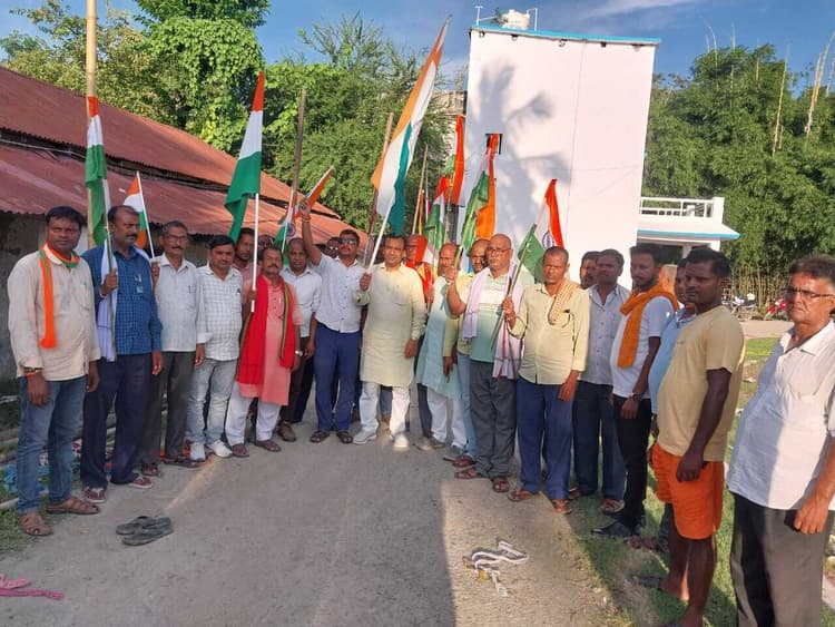 सरायगढ़. प्रखंड क्षेत्र के भाजपा कार्यकर्ताओं ने स्वतंत्रता दिवस की पूर्व संध्या तिरंगा यात्रा निकाली. बाइक पर तिरंगा लेकर सवार यात्रा का नेतृत्व भाजपा प्रखंड अध्यक्ष किशोर ठाकुर ने की. तिरंगा यात्रा छिटही हनुमान नगर पंचायत के शिव मंदिर प्रांगण से निकली गई. जो लौकहा, झिल्लाडुमरी, शाहपुर पृथ्वीपट्टी, पिपरा खुर्द, भपटियाही सहित अन्य पंचायतों में भ्रमण किया. भाजपा कार्यकर्ताओं ने तिरंगा यात्रा के दौरान लोगों को हर घर में झंडोत्तोलन करने की बात कही. तिरंगा यात्रा का समापन बीएन इंटर कॉलेज भपटियाही के प्रांगण में किया गया. इस मौके पर छातापुर विधानसभा प्रभारी रामकुमार राय, प्रभु कुमार मेहता, विजय कुमार सिंह, मुकेश मेहता, राधेश्याम मेहता, नरेंद्र मुखिया, अजय सिंह, चंदन गुप्ता, परमेश्वर मुखिया, भवी लाल शर्मा, तारानंद मुखिया, कामेश्वर सिंह, ओम प्रकाश साह, राजेश ठाकुर, मनोज साह, विष्णुदेव महतो, रविंद्र सिंह, रविंद्र कुमार मेहता, जितेंद्र पासवान, मनीष कुमार, सोनू कुमार, अमरेंद्र राय, बेचन राय, श्याम सुंदर राय सहित दर्जनों भाजपा कार्यकर्ता शामिल थे.