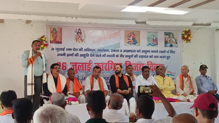 वीरपुर. 26 जुलाई 1999 देश की स्मिता, स्वतंत्रता, एकता एवं अखंडता को अक्षुण्ण बनाये रखने के लिये अपने प्राणों की आहुति देने वाले मां भारती के सपूतों की शहादत को याद करते हुए शनिवार को नगर क्षेत्र स्थित एक होटल में कारगिल विजय दिवस मनाया गया. कार्यक्रम की अध्यक्षता मनोज कुमार पाठक ने की. जबकि मंच का संचालन अभय कुमार जैन ने किया. कार्यक्रम के मुख्य अतिथि पीएचईडी मंत्री नीरज कुमार सिंह रहे. इस दौरान कारगिल में शहीद हुए कैप्टन मनोज कुमार पाण्डेय, मेजर विवेक गुप्ता, कैप्टन विजयन्त थापड़, मेजर विक्रम बत्रा, कैप्टन अमोल कालिया को पुष्प देकर श्रद्धांजलि दी गयी. इसके बाद वक्ताओं ने कारगिल युद्ध की चर्चा करते हुए देश की रक्षा के दौरान शहीद हुए जवानों को नमन किया और उनकी शौर्य की गाथा बतायी. मंत्री ने कहा कि आज मिथिला समाज द्वारा आयोजित कारगिल विजय दिवस पर आयोजित कार्यक्रम में उपस्थित सभी लोगों को आभार है. आज के इस कारगिल विजय दिवस पर विजय होने के लिये उन शहीदों को नमन करता हूं जिन्होंने अपने आप का बलिदान देकर देश का नाम रखा. कार्यक्रम का जगह छातापुर विधानसभा को चुना गया इसके लिये बधाई. जब भी कोई सैनिक शहीद होते हैं तो हम उन्हें याद करते हैं वतन के लिये जो शहीद होंगे उन्हें निश्चित ही याद किया जाएगा. प्रधानमंत्री मोदी जी सेना को मजबूत कर रहें हैं. हमारे भारतीय सेना में जो योजनाओं को दी है इसमें दोनों तरफ सम्मान है. पाकिस्तान जिस हिंदुस्तान से अलग हुआ है उसी के खिलाफ षड्यंत्र करता है. पीठ में छुरा घोपता है, लेकिन हमें अपने सैनिको पर गर्व हैं. वहां कोई जाट पात नहीं है. केवल भारतीय सैनिक ही पहचान है. पहले हमारे सेना को अनुमति लेनी पड़ती थी, लेकिन अब ऐसा नहीं है. आज हमारी सेना कहती है कि गोली का जबाव गोला से दो. ये हमारे लिये गर्व की बात है. चाहे कारगिल युद्ध हो या ऑपरेशन सिंदूर. भारत ने पाकिस्तान को तबाह कर दिया. ये हमारी सेना की ताकत है. हिंदुस्तान की बहनों की ताकत है भाइयो का ताकत दिखना बांकी है. पाकिस्तान को तो हमलोगों ने पानी ले बिना प्यासा बना दिया. मौके पर राघवेंद्र झा, मिथिलेश झा,आशुतोष झा, नरेन्द्र ऋषिदेव, राम कुमार राय, शालीग्राम पाण्डेय, अनुरंजन झा, महामाया चौधरी, बालेश्वर सिंह, इंद्रमणि मिश्रा, कमल सिंह, गोपाल आचार्य आदि मौजूद थे.