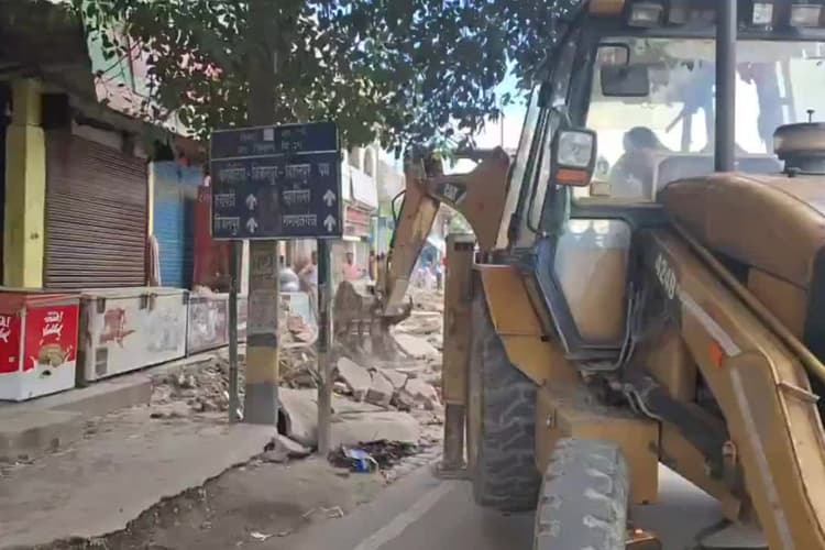 Supaul Bulldozer Action: सुपौल जिले के नगर पंचायत निर्मली में एक बार फिर प्रशासन ने अवैध अतिक्रमण पर कार्रवाई की है. बुधवार को बीते एक सप्ताह से ठप पड़े अतिक्रमण विरोधी अभियान को फिर से चालू किया गया. हटिया चौक के आसपास कई सालों से बसे दुकानों और ठेलो को हटाया गया. सुबह 9:30 बजे शुरू हुआ यह अभियान करीब छह घंटे तक चला और दोपहर 3:30 बजे तक नगर प्रशासन की टीम ने बुलडोजर की मदद से करीब 10 दुकानों को ध्वस्त कर दिया.