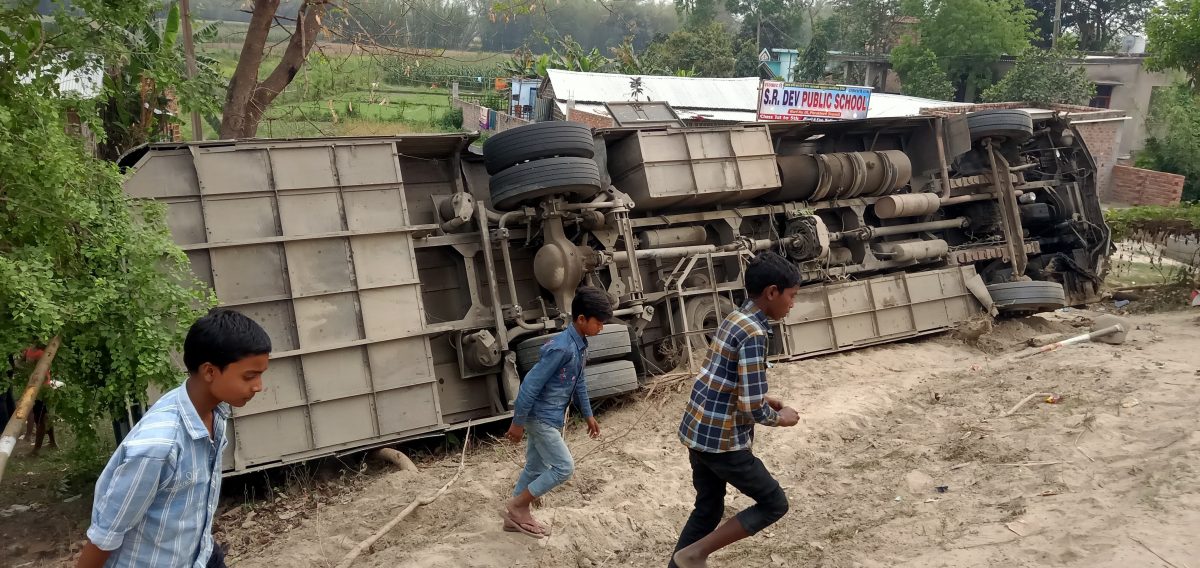 गढ्ढे में पलटी बस, आधा दर्जन से अधिक यात्री घायल